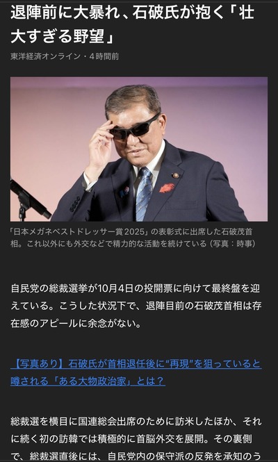 … | 2無題Name名無し 25/09/18(木)11:19:29No.746326+石破さんにずっと総理続けて欲しいねぇ |