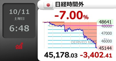【速報】日経平均株価、一時時間外取引-3,402円大暴落