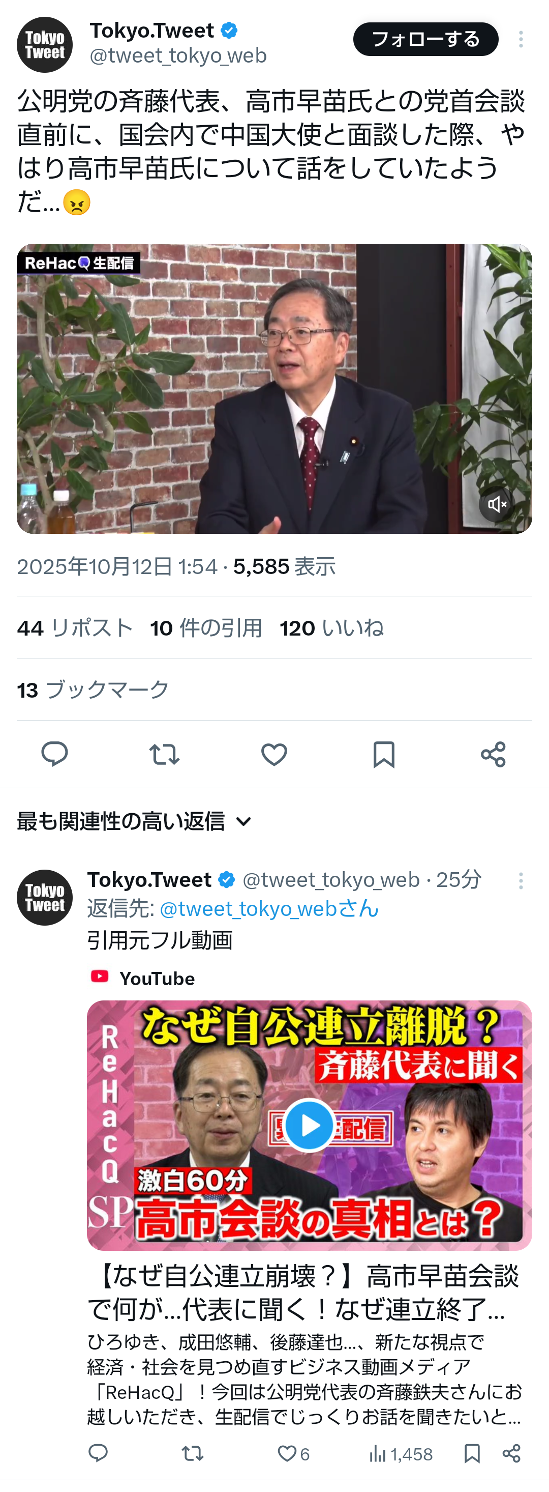 … | 6無題Name名無し 25/10/11(土)08:58:24No.751276+公明党はろくな事しない |