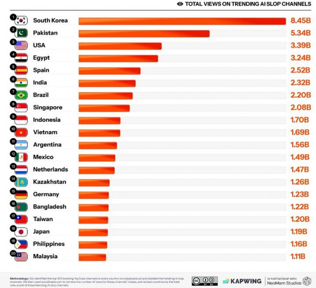 AIで作られた「低品質なYouTube動画」の消費量が世界で最も多い国は