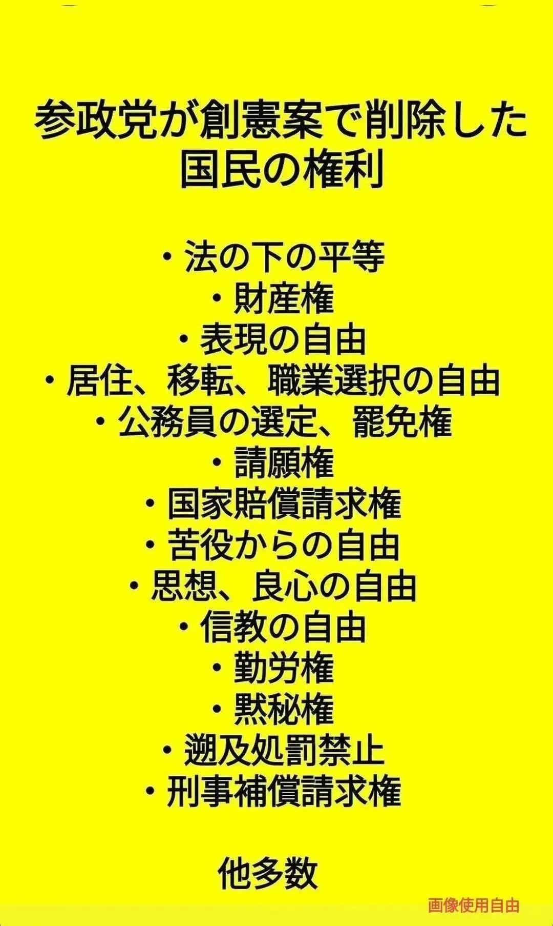 この案では、現在憲法が保障してきた多くの国民の権利が明記されておらず、あとで「知らなかった」では済まされないほどの内容となっている。