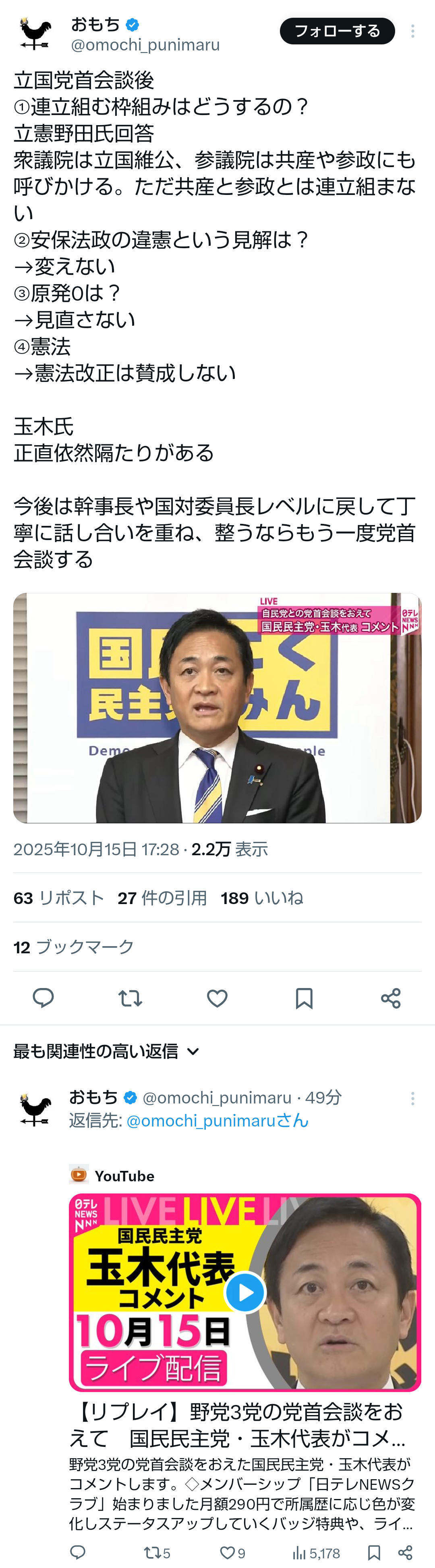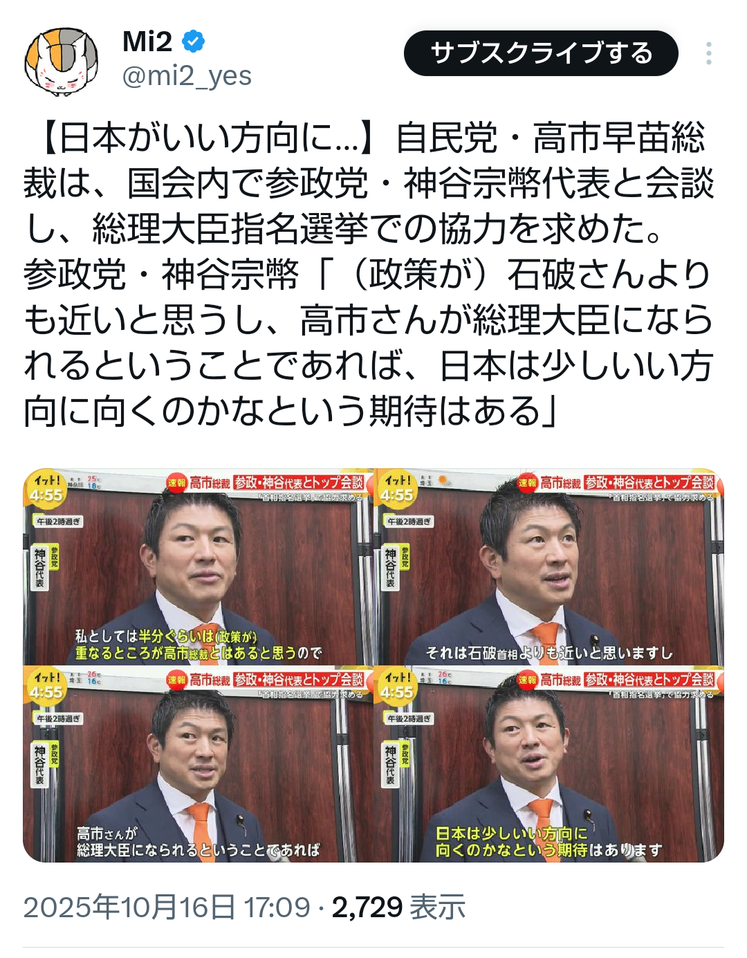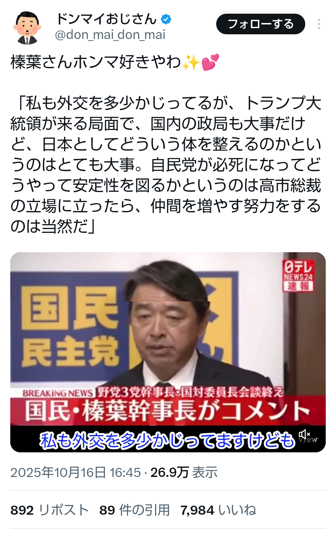 … | 63無題Name名無し 25/10/15(水)19:12:57No.753147そうだねx2早苗ちゃんは政策協議に応じるスタンスなので |