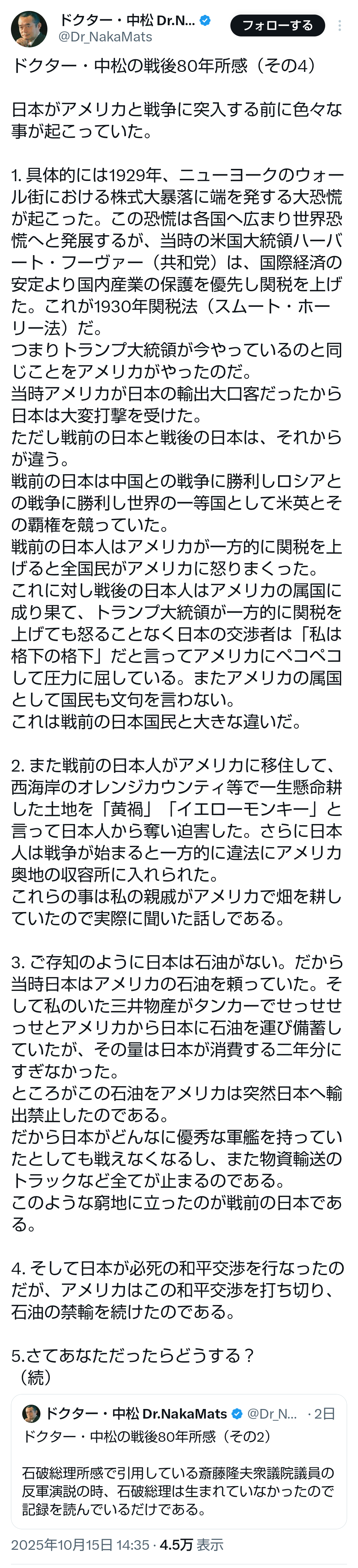 … | 84無題Name名無し 25/10/15(水)20:49:19No.753168+ 1760528959553.png-(1307193 B) ![]() >日本がアメリカと戦争に突入する前に色々な事が起こっていた。 |