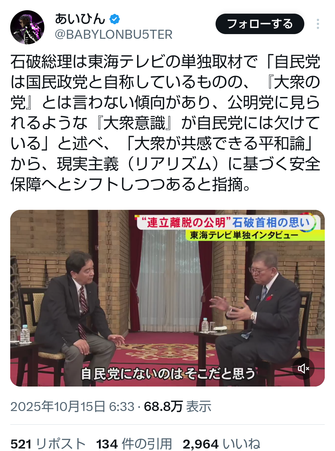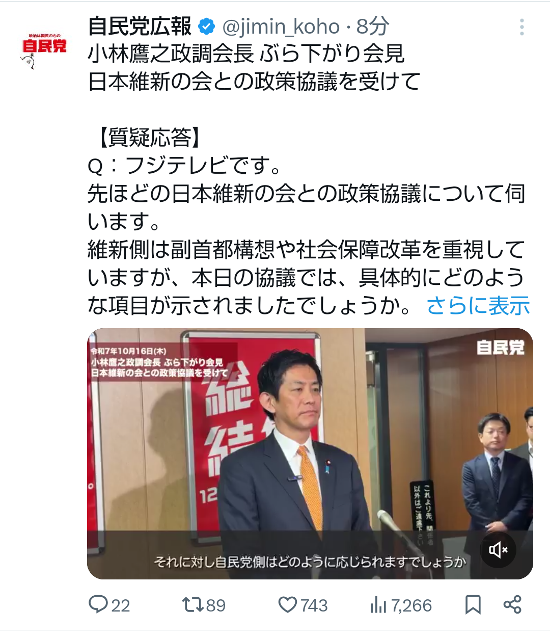 … | 88無題Name名無し 25/10/15(水)20:58:44No.753172そうだねx1https://x.com/jimin_koho/status/1978427445595582539 |