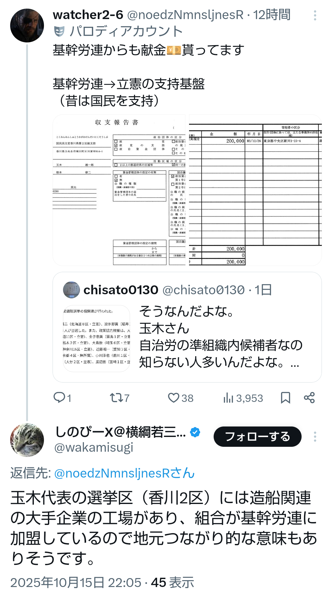 … | 709無題Name名無し 25/10/18(土)10:41:24No.753828+>真っ当な選挙自体は投票の秘密は守られるけど |