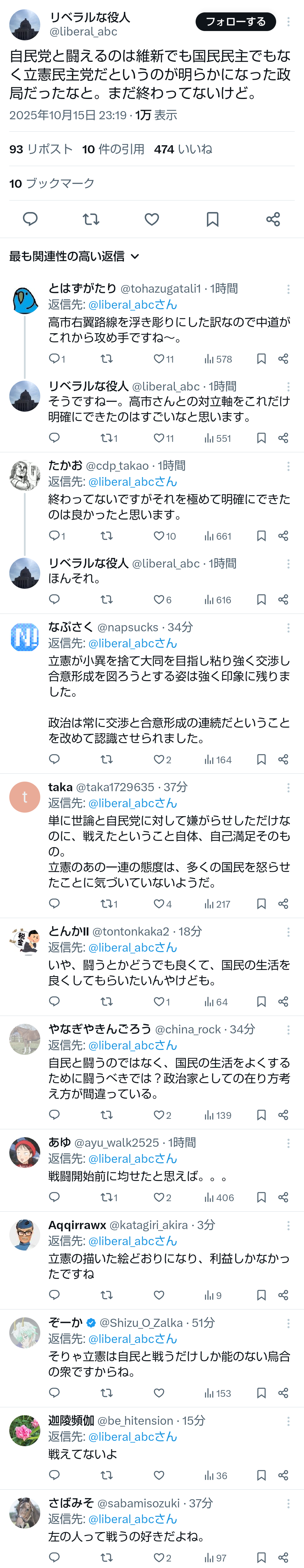 … | 85無題Name名無し 25/10/15(水)20:49:37No.753169そうだねx1立憲のは交渉じゃないんだよね |