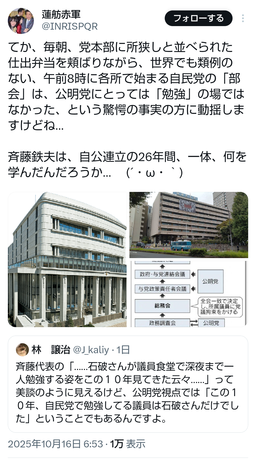 … | 18無題Name名無し 25/10/15(水)17:36:24No.753100+>オザーが公明党は台湾訪問許せなかったって |