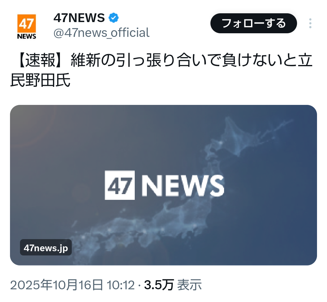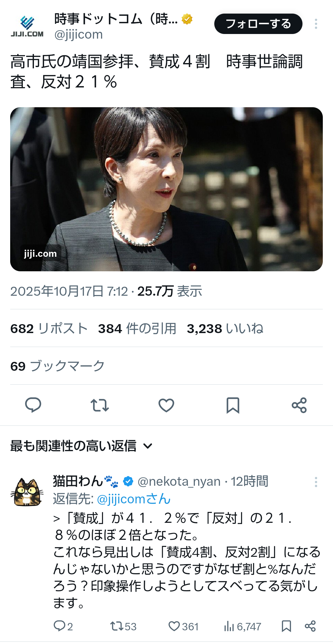 … | 781無題Name名無し 25/10/19(日)08:57:32No.753919+https://news.jp/i/1352252628409483400 |