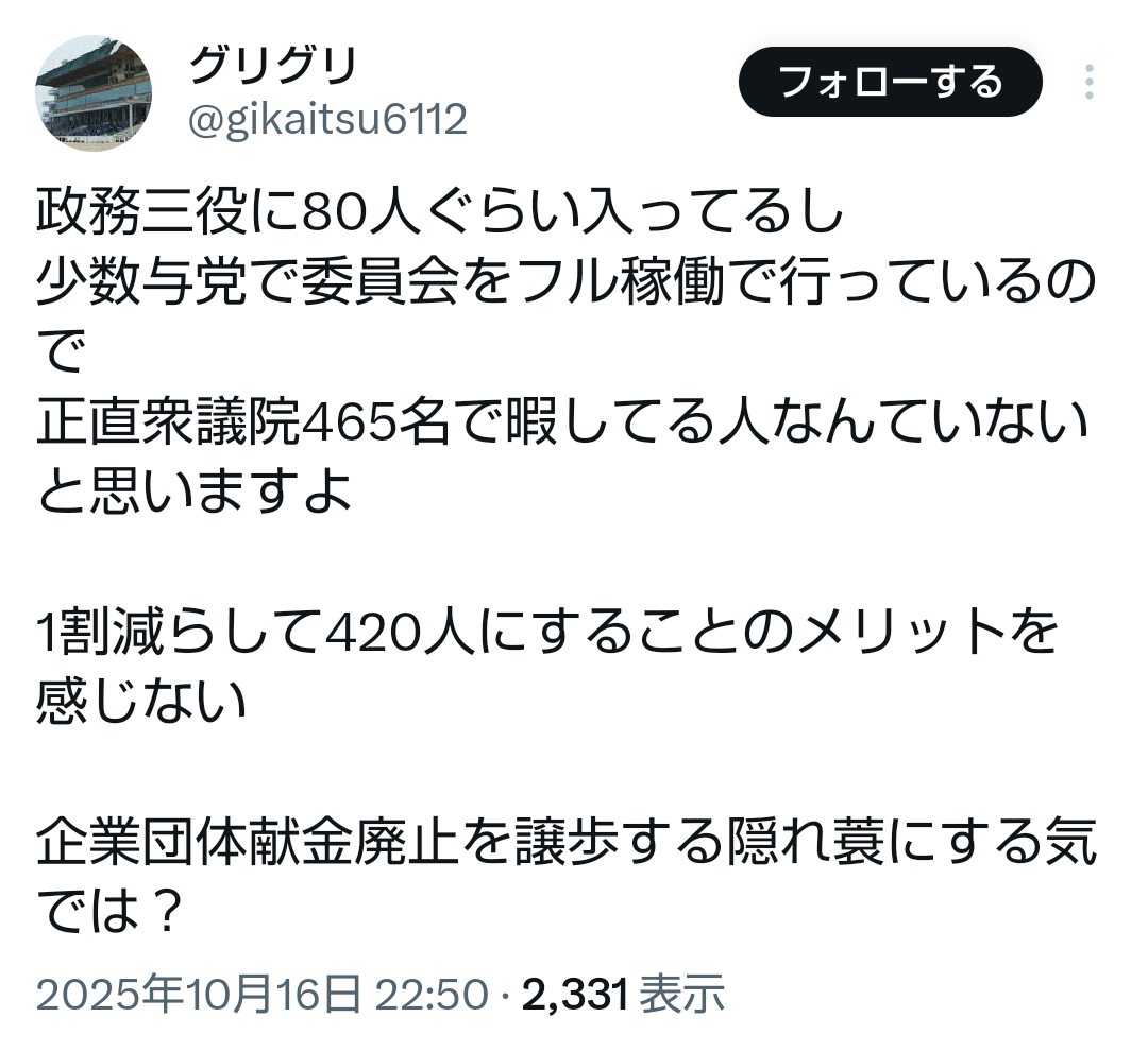 … | 697無題Name名無し 25/10/18(土)08:39:37No.753816+給料泥棒議員の比率を下げるならいいかなって |