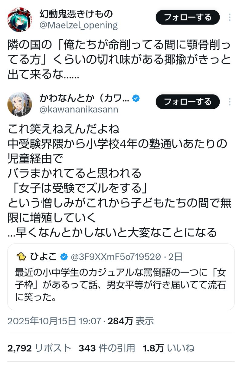 … | 696無題Name名無し 25/10/18(土)08:33:54No.753815そうだねx1 1760744034897.png-(1434477 B) ![]() https://x.com/kenken680311/status/1979160957952614901 |