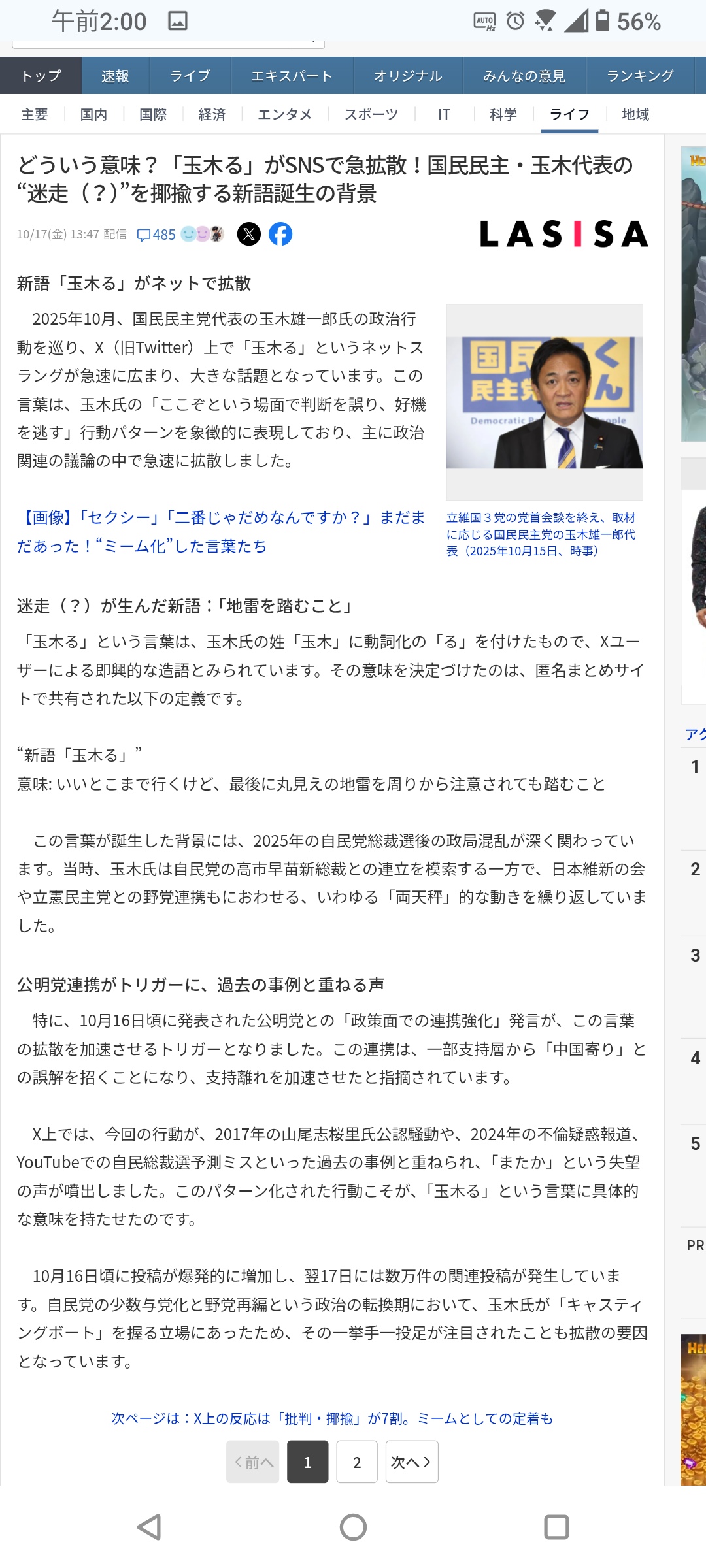 … | 6無題Name名無し 25/10/15(水)17:12:34No.753088そうだねx1参院でNHK党と会派を作ると報道があったら何故か連立するんだ!と燃えてる人がいてちょっと怖いと思った |