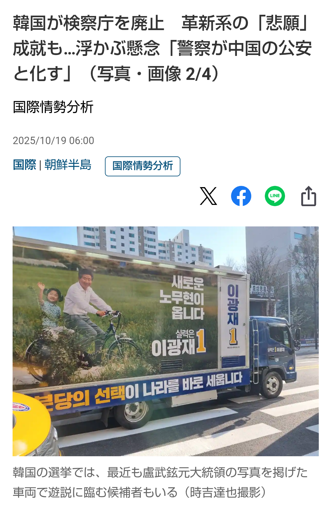 … | 782無題Name名無し 25/10/19(日)09:10:04No.753920+>>革新系支持層の「悲願」が成就した形だが、警察捜査を監視する機能が失われることに伴い、警察などの捜査当局が「中国の公安に近い組織に変貌していく」と懸念する声も上がっている |