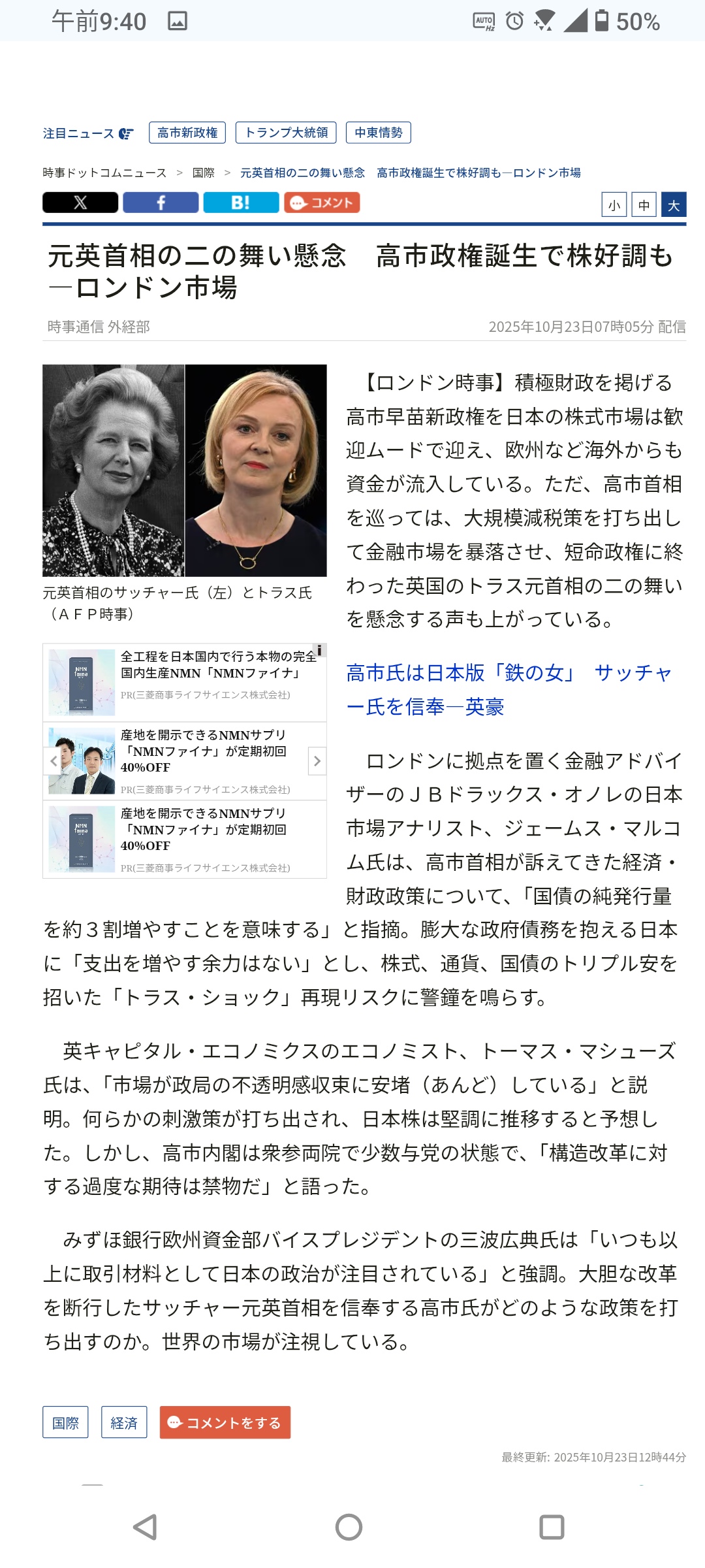 | … | 2無題Name名無し 25/10/24(金)08:54:48No.755264そうだねx1 1761263688256.jpg-(86258 B) 盾乙 高市総理にサッチャー云々は褒め言葉だからなぁ… |
