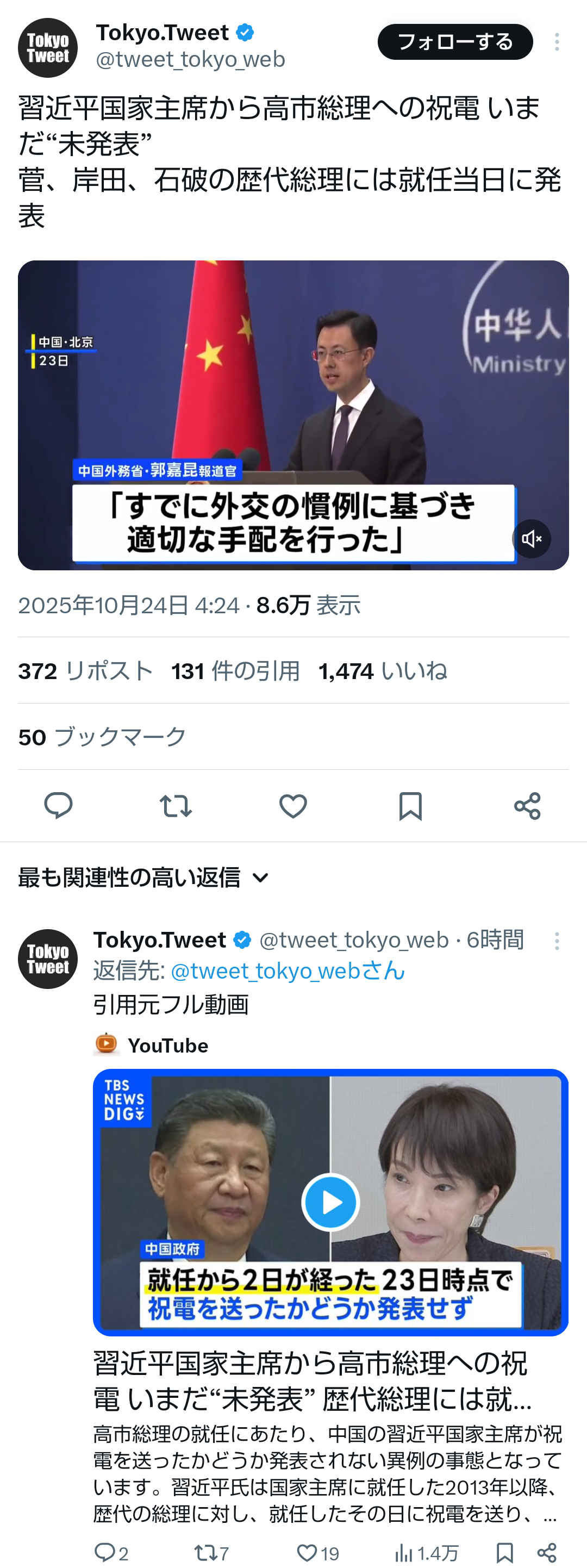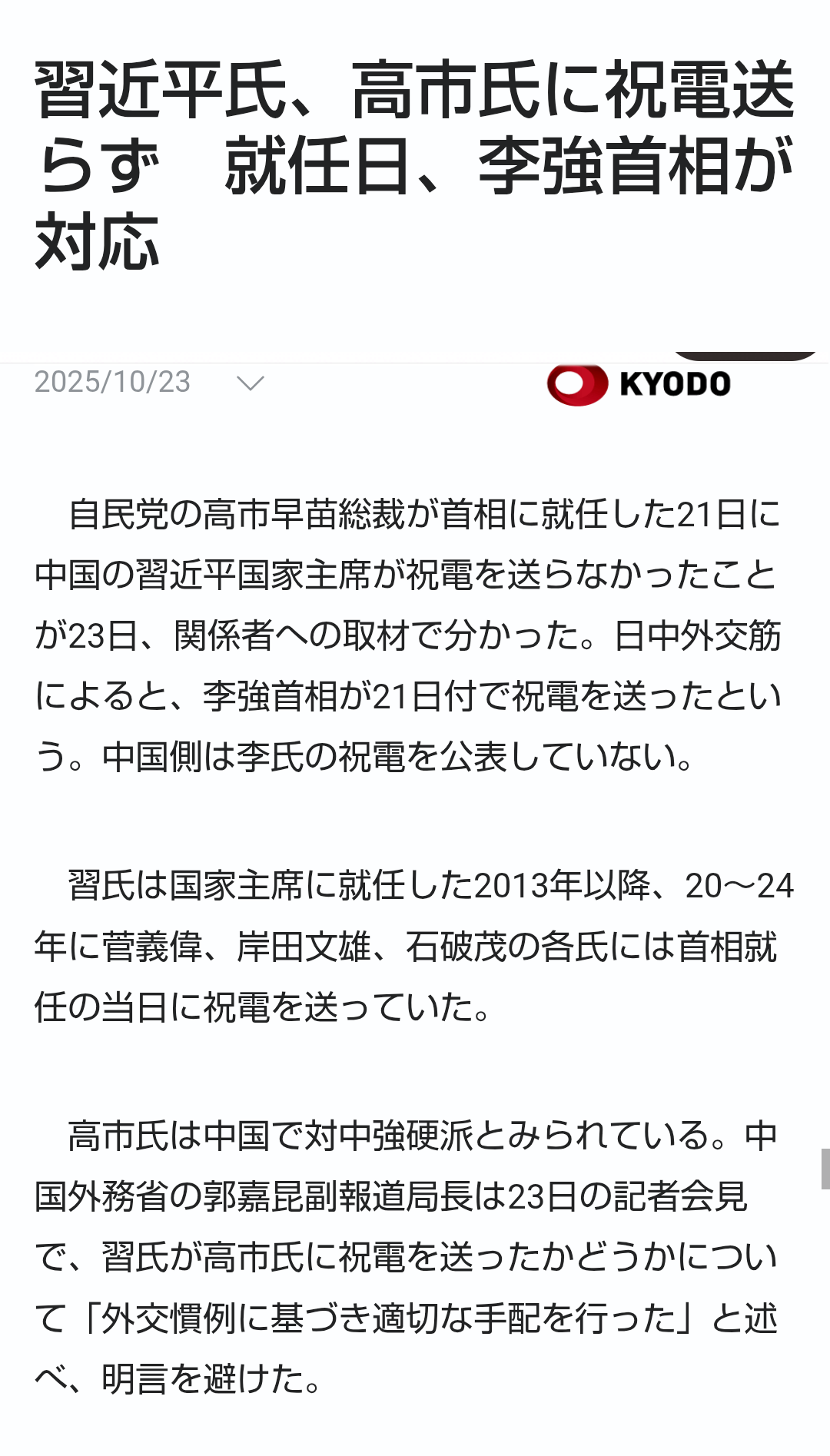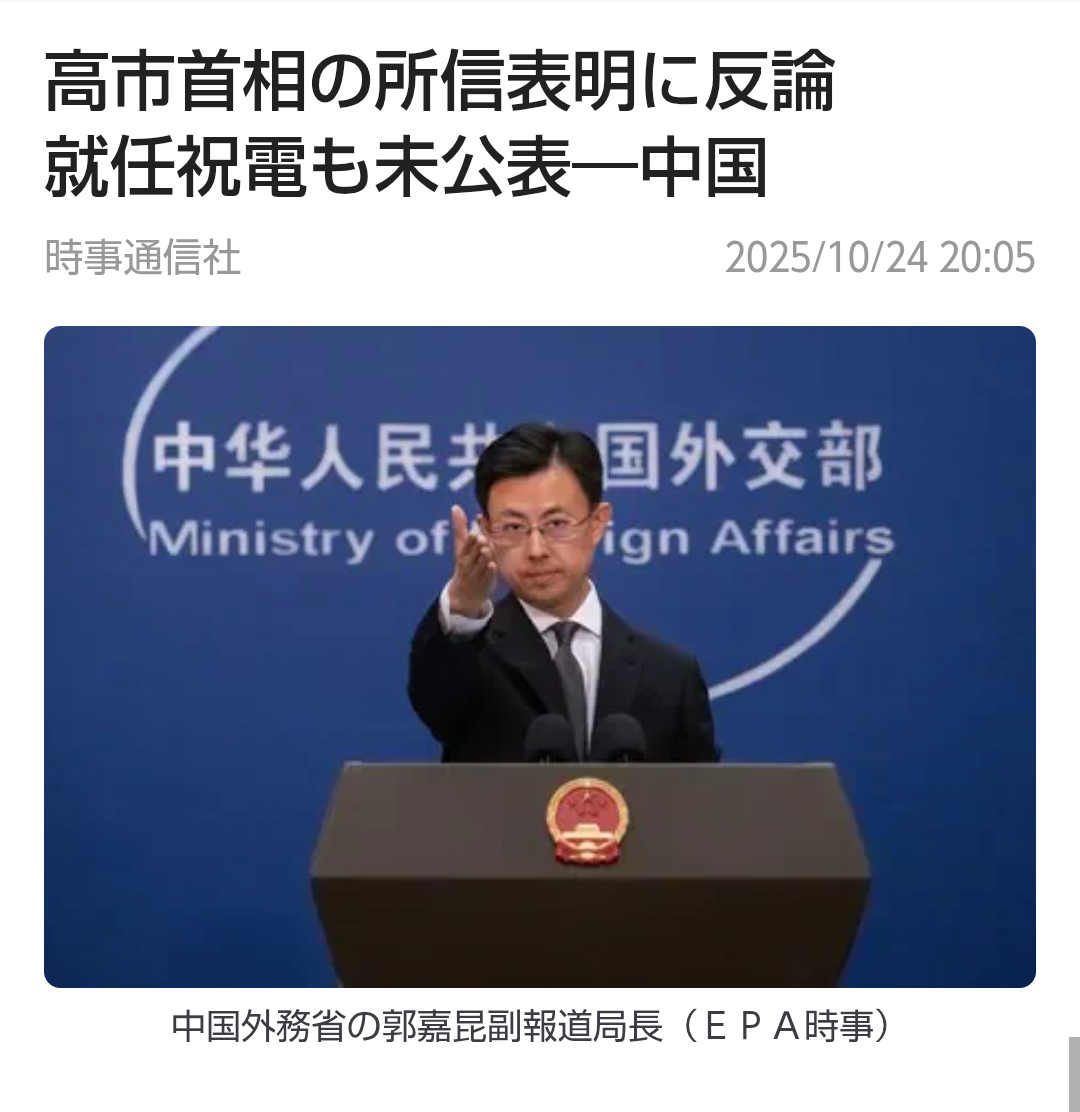 | … | 47無題Name名無し 25/10/24(金)12:36:52No.755319+ 1761277012571.png-(327859 B) >習近平氏、高市氏に祝電送らず 就任日、李強首相が対応 |