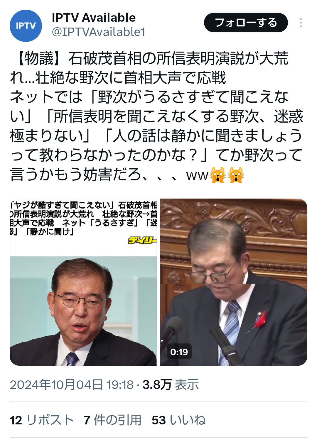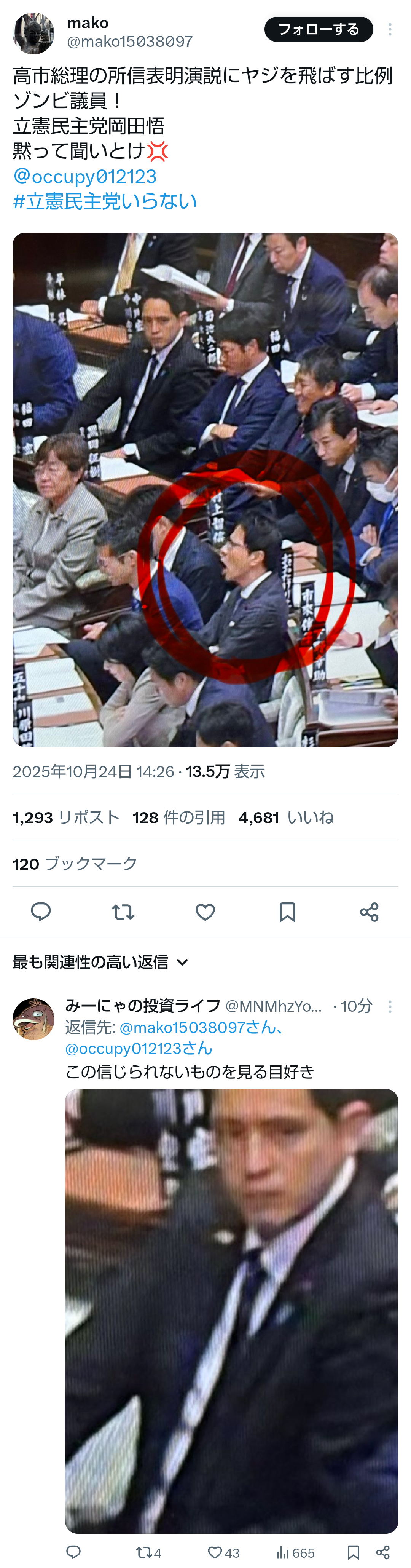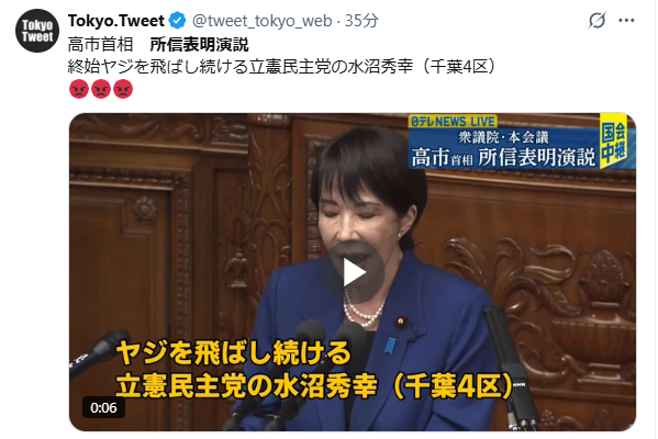 | … | 86無題Name名無し 25/10/24(金)15:09:11No.755358そうだねx4 1761286151661.png-(275936 B) >いまは所信表明演説を聞く場であって発現許可を得てもいない一議員が |