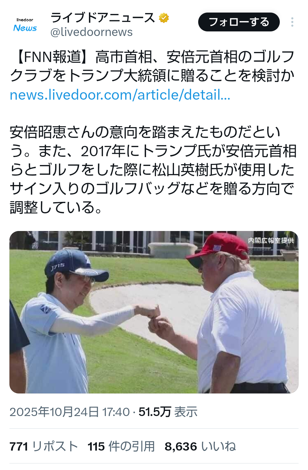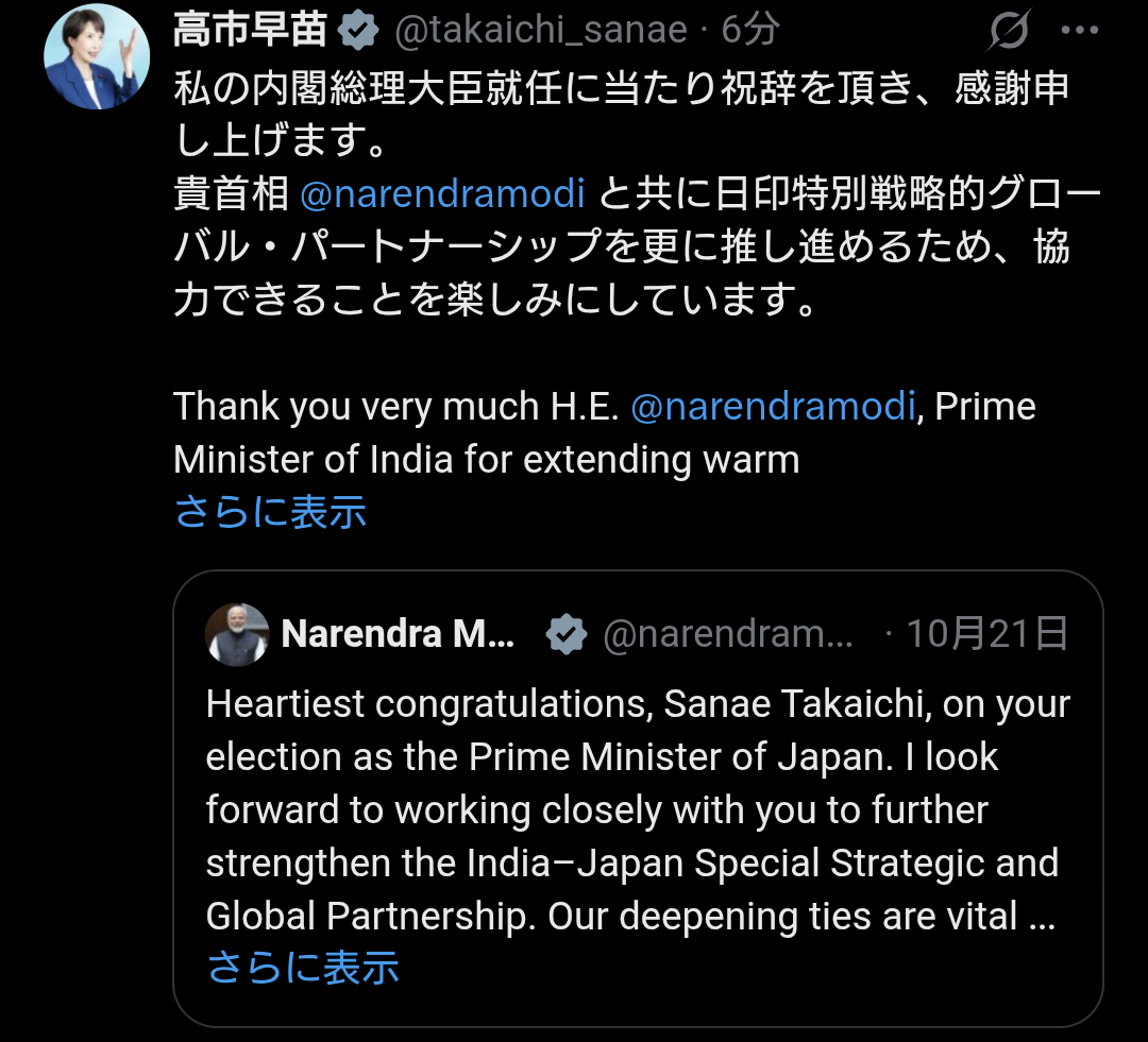 | … | 236無題Name名無し 25/10/25(土)11:39:20No.755518+トランプ政権での高市さんの紹介が安倍の後継者だったりするからね |