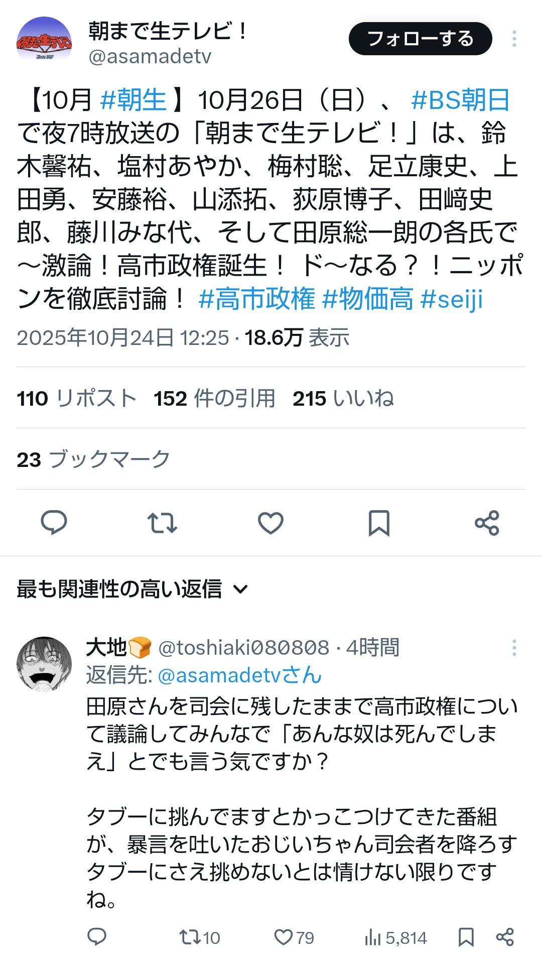 | … | 190無題Name名無し 25/10/24(金)23:21:42No.755467+>政治討論番組としてかぁ |