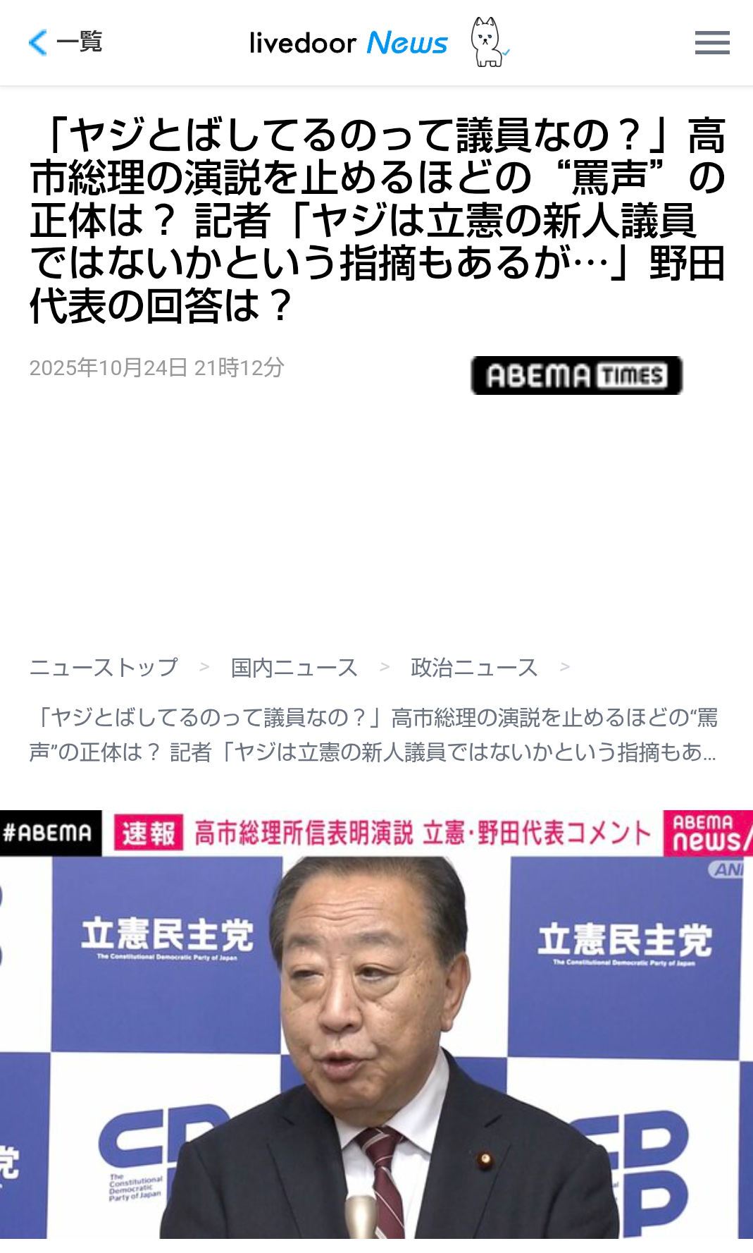 | … | 228無題Name名無し 25/10/25(土)10:24:23No.755509そうだねx1 1761355463194.png-(811347 B) >「ヤジとばしてるのって議員なの?」高市総理の演説を止めるほどの“罵声”の正体は? 記者「ヤジは立憲の新人議員ではないかという指摘もあるが…」野田代表の回答は? |