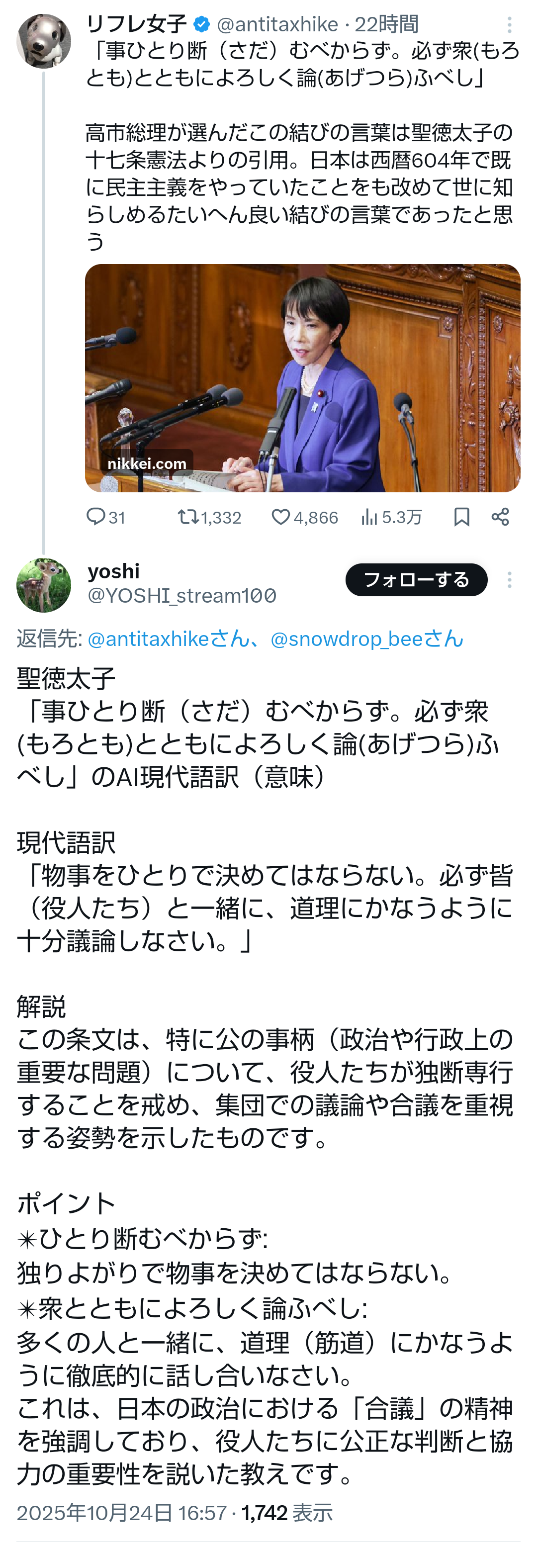 | … | 73無題Name名無し 25/10/24(金)14:13:59No.755345そうだねx1しかし高市さん話術巧みだな |
