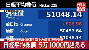 27日につけた取引時間中の史上最高値(5万0549円60銭)を2日ぶりに更新した。