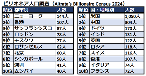 米調査会社アルトラタは29日、世界の純資産10億ドル(約1520億円)以上の