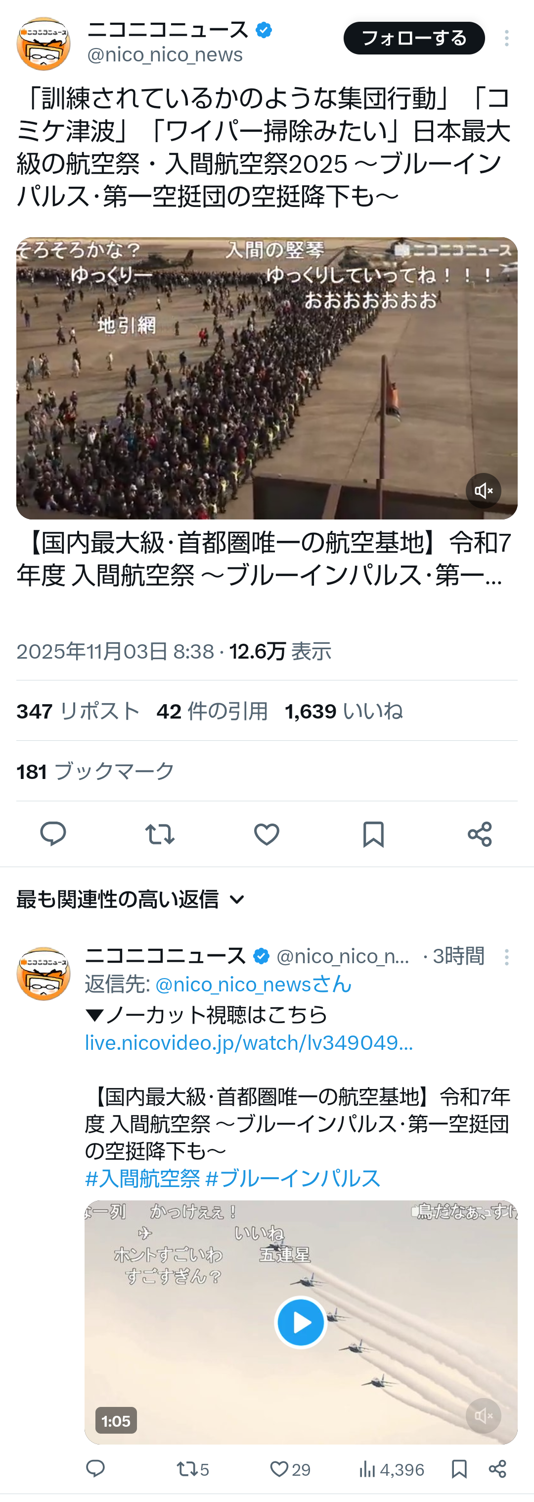 | … | 65無題Name名無し 25/11/03(月)18:13:45No.757516+ 1762161225842.png-(1423536 B) https://x.com/nico_nico_news/status/1985129312358678622 |