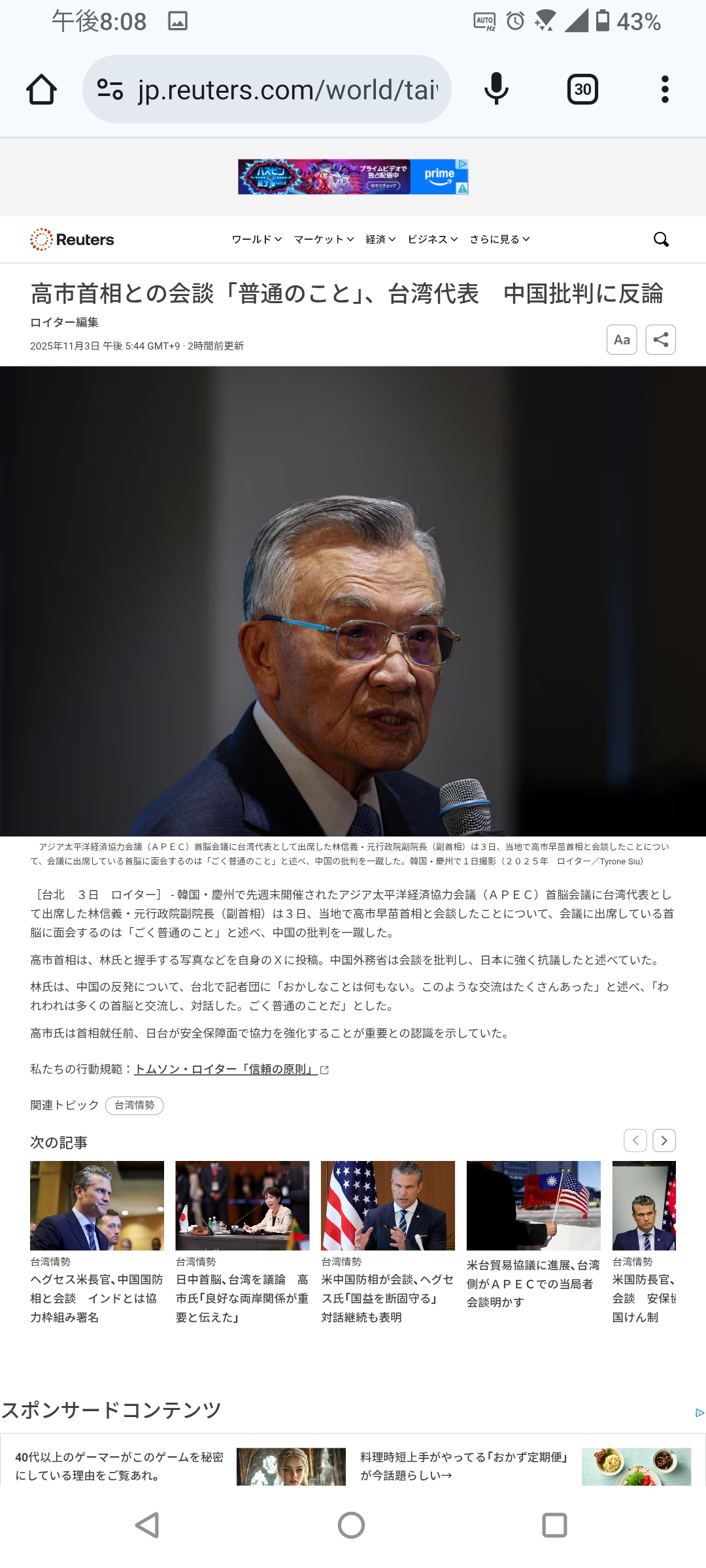 | … | 80無題Name名無し 25/11/03(月)20:13:34No.757538そうだねx1 1762168414846.jpg-(511439 B) https://jp.reuters.com/world/taiwan/DYMTOP3C5VLXLO7QFQ53IG47ZQ-2025-11-03/ |