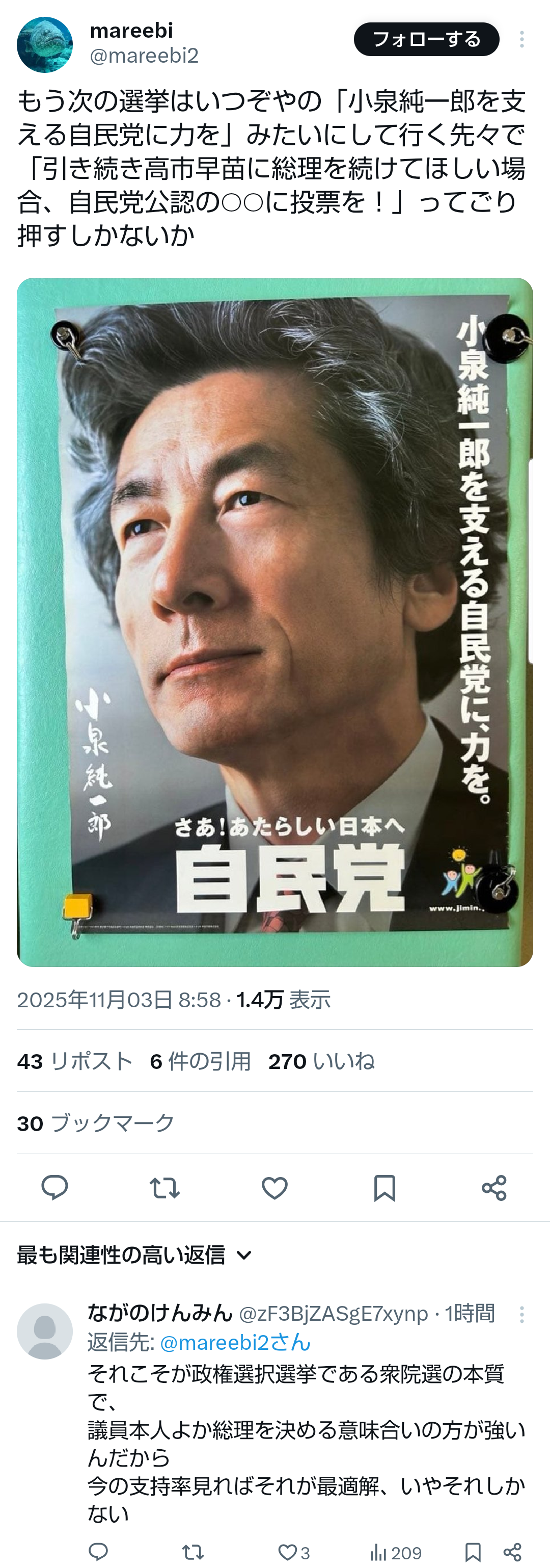 | … | 43無題Name名無し 25/11/03(月)16:48:21No.757494+政治活動には全力なのに政治に関心が無いからな… |