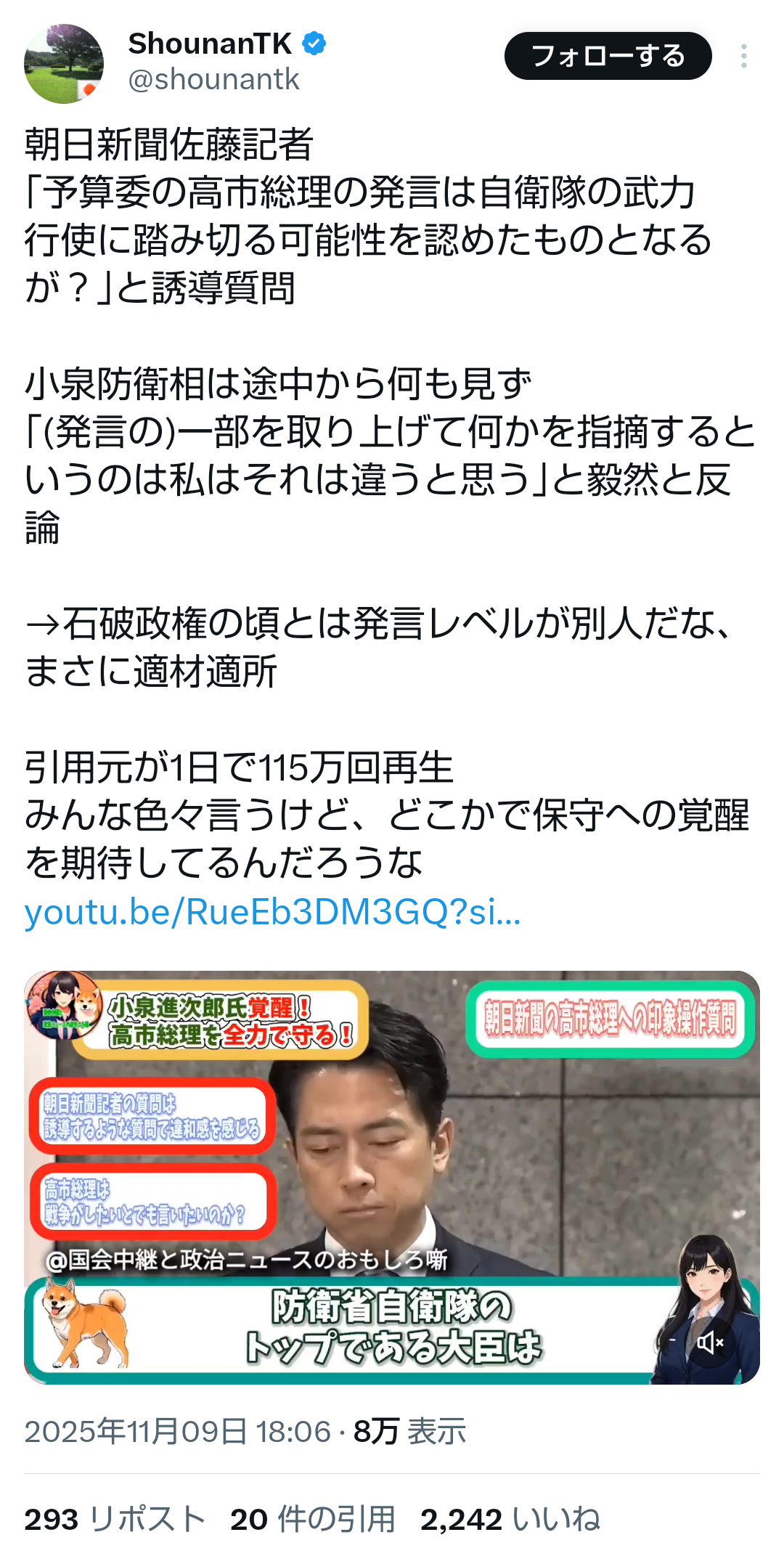 | … | 53無題Name名無し 25/11/09(日)20:05:42No.758702そうだねx1 1762686342762.png-(1007739 B) >朝日新聞佐藤記者 |