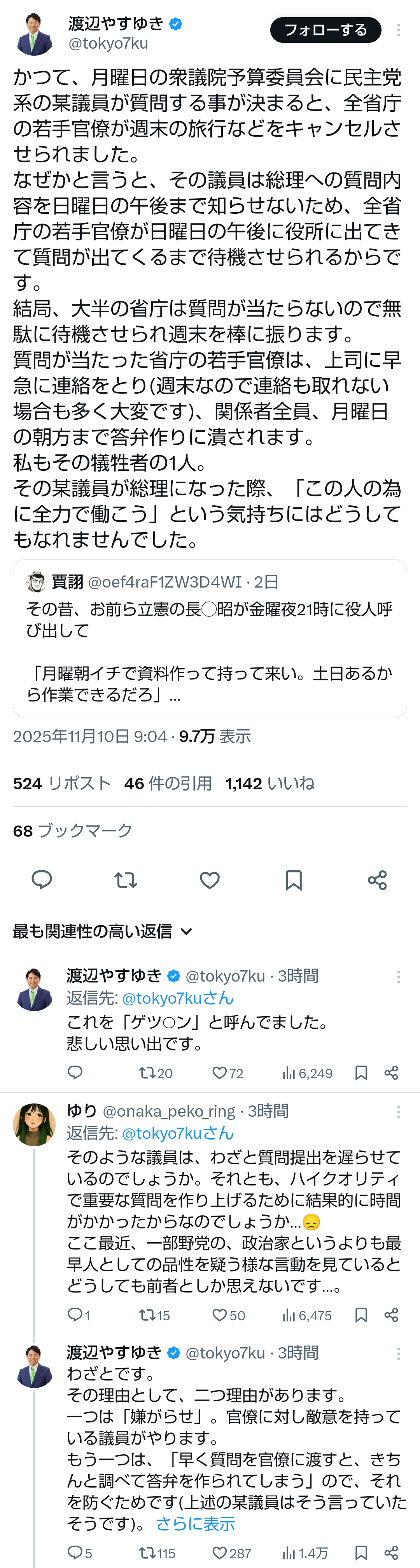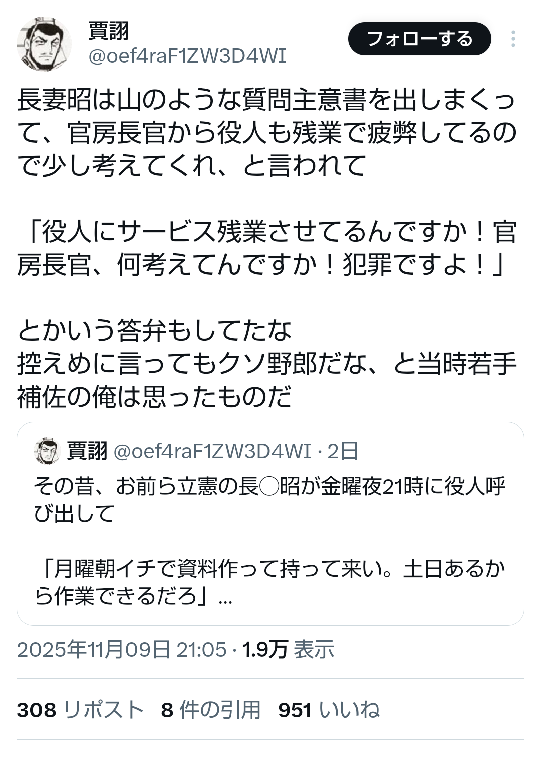 | … | 94無題Name名無し 25/11/09(日)22:23:59No.758746+>野党がアホなことを言う度に元官僚の人達がクソな思い出を語るターン |
