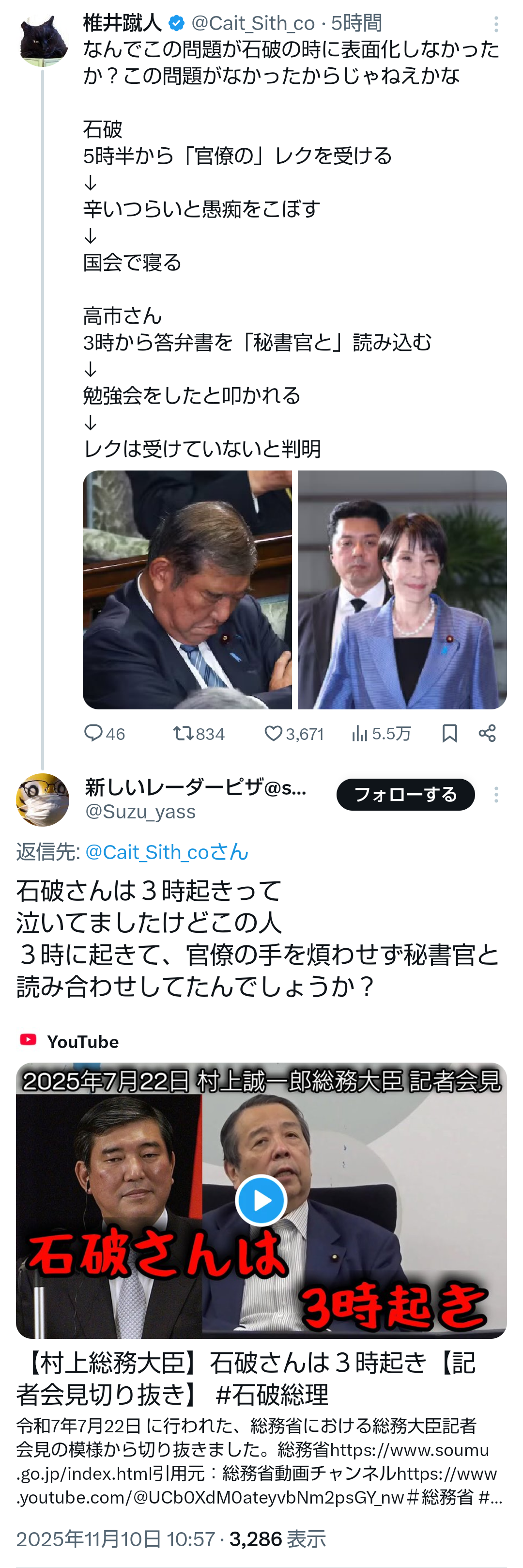 | … | 40無題Name名無し 25/11/09(日)18:56:02No.758689+>今日は高市さん関連のXがほとんど流れて来ないし流石に休めたのかな |