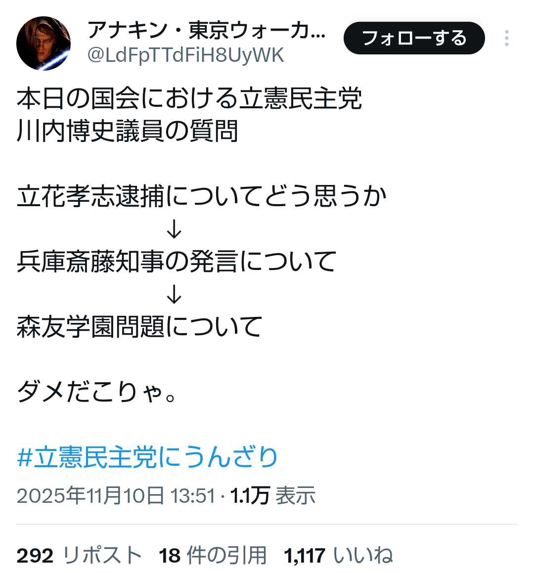 | … | 550無題Name名無し 25/11/12(水)11:15:47No.759299+片山さつきに2018年の発言に関してどうなんですか、とか噛み付いてるや今日の立憲 |