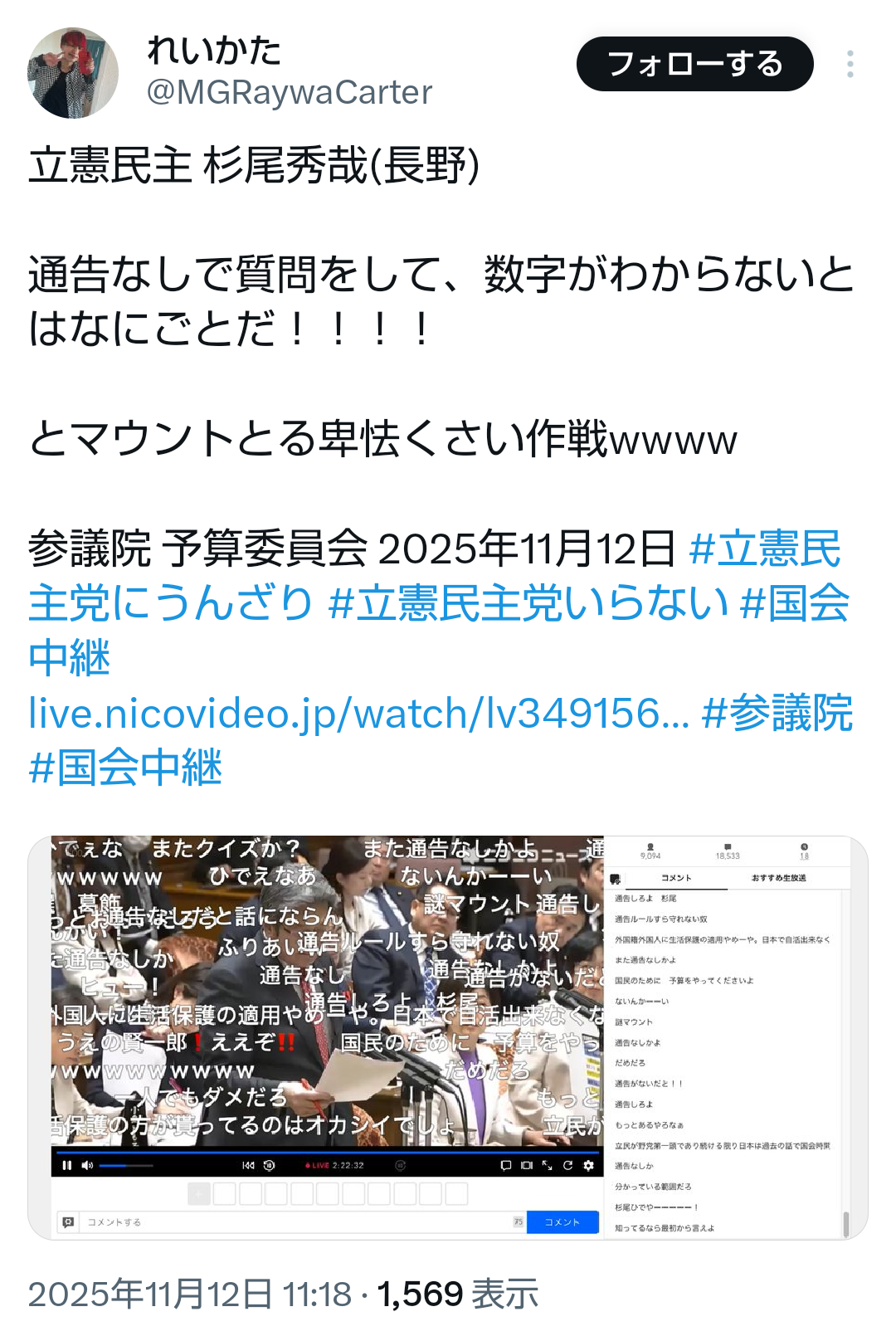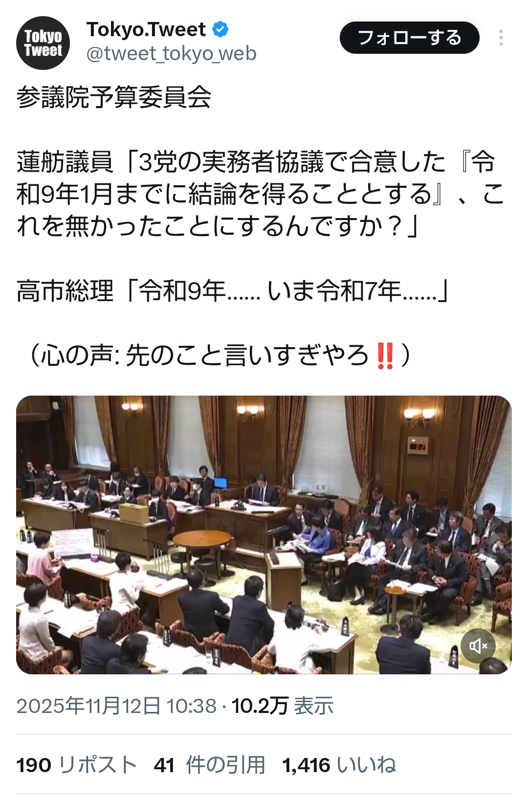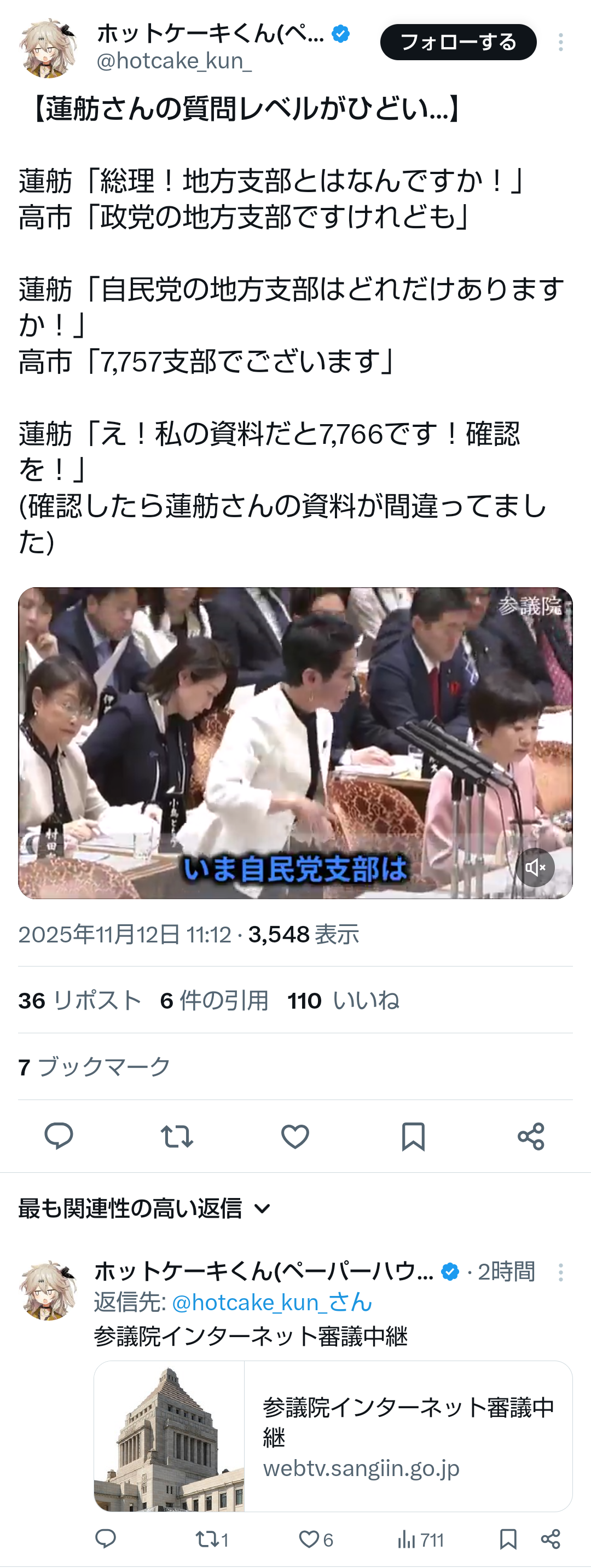 | … | 556無題Name名無し 25/11/12(水)11:46:09No.759305そうだねx1 1762915569110.png-(1020384 B) >参議院予算委員会 |
