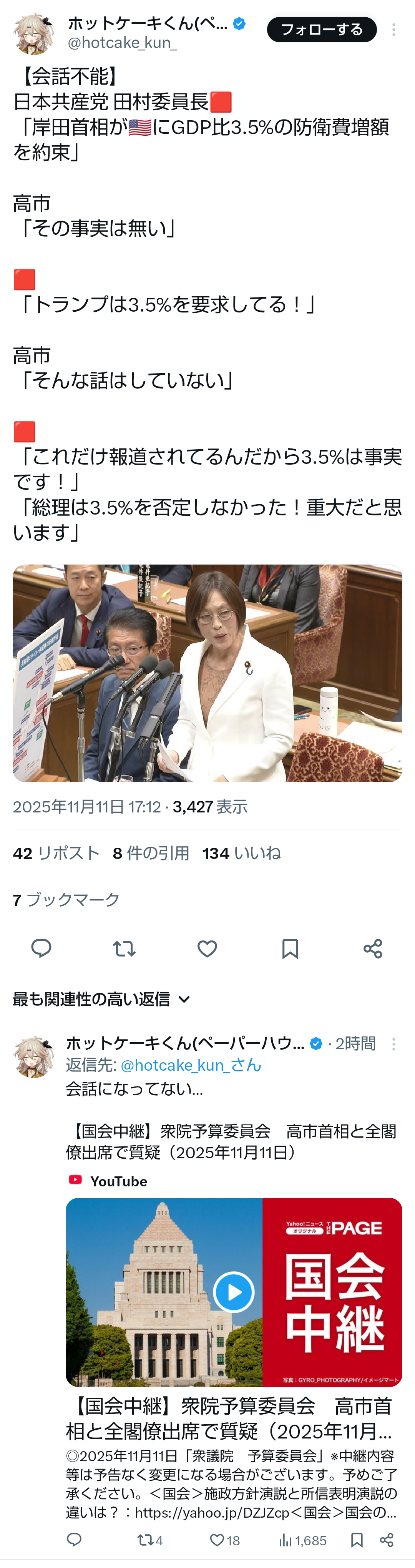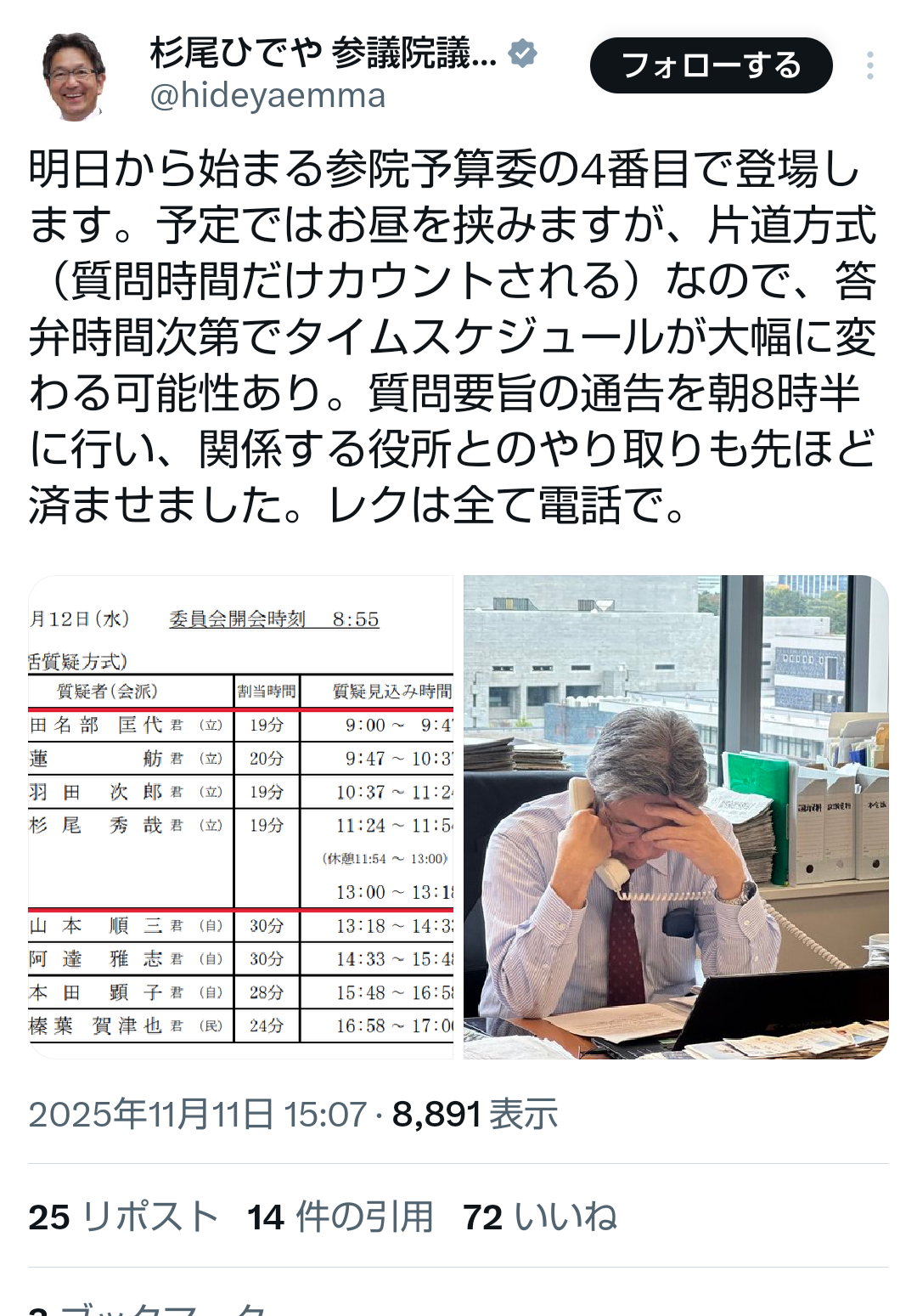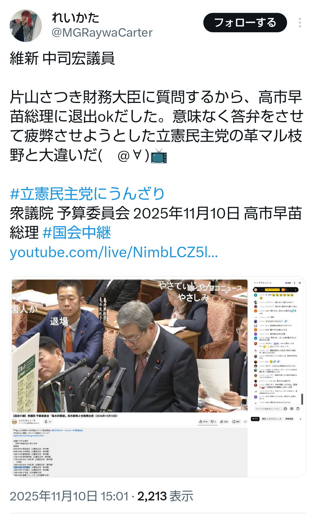 | … | 556無題Name名無し 25/11/12(水)11:46:09No.759305そうだねx1 1762915569110.png-(1020384 B) >参議院予算委員会 |