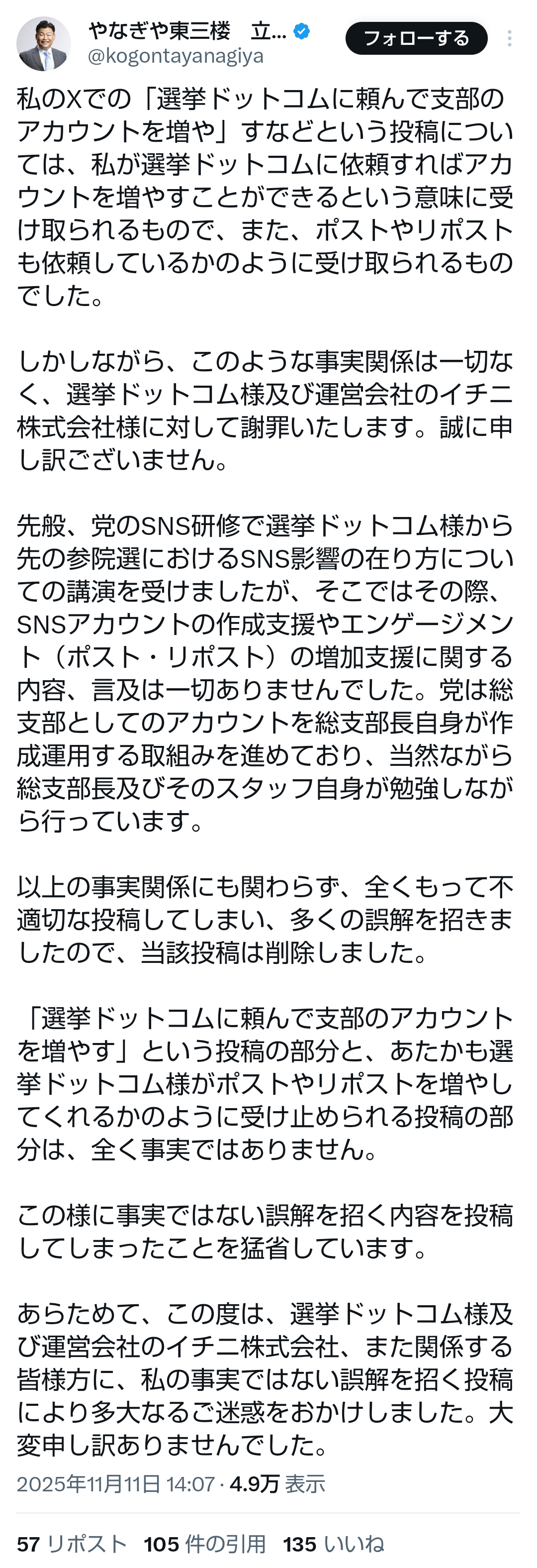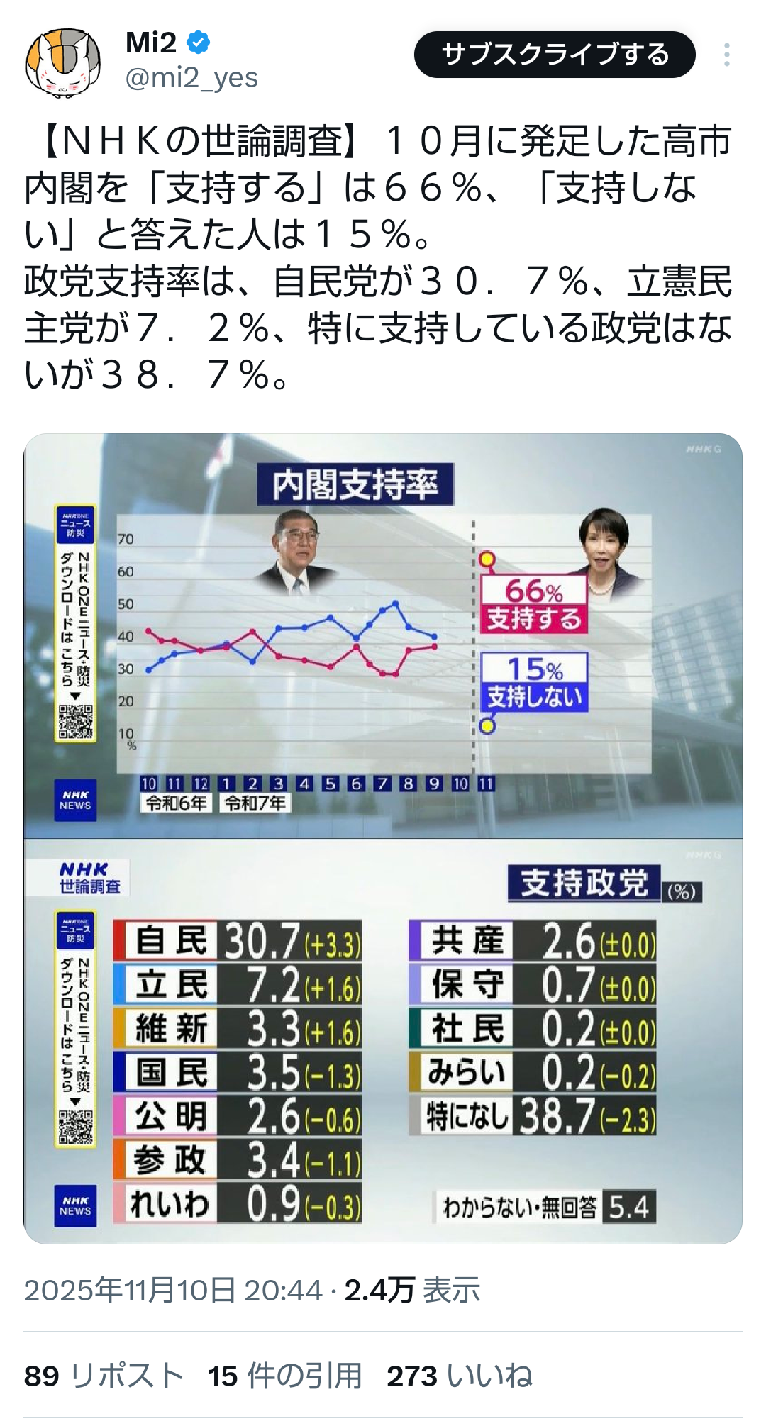 | … | 39無題Name名無し 25/11/09(日)18:55:23No.758688+ 1762682123915.png-(737742 B) >自民参院幹部「目にあまる投稿多い」自身をめぐる記事に反論「高市総理と小野田議員と対応検討」 |