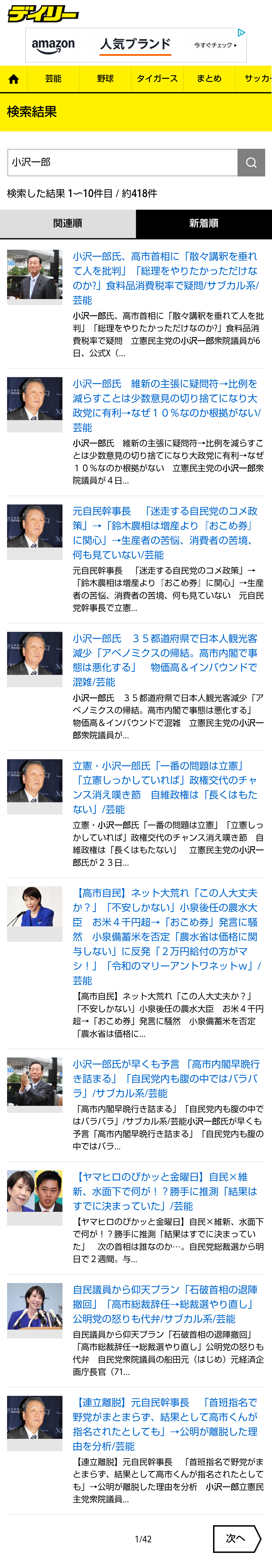 | … | 537無題Name名無し 25/11/11(火)23:40:02No.759278+>デイリーくんは毎日とか毎週とか頻繁に小沢一郎のツイート記事にするくらいあっち好きだよ |