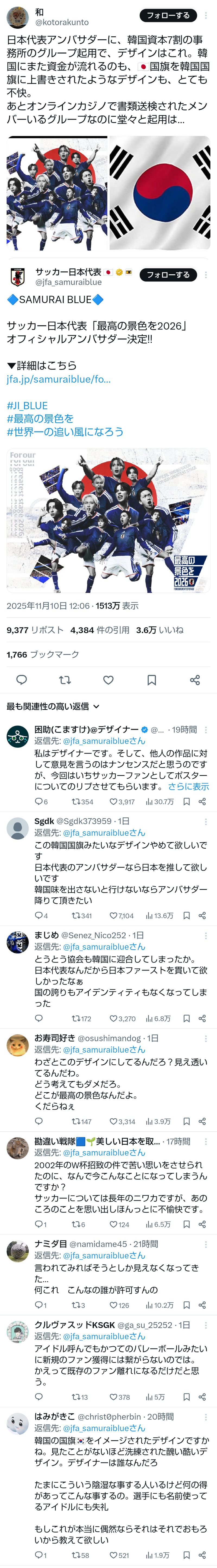 | … | 571無題Name名無し 25/11/12(水)12:34:25No.759322そうだねx3 1762918465549.jpg-(683399 B) https://x.com/jfa_samuraiblue/status/1987718387091530186 |