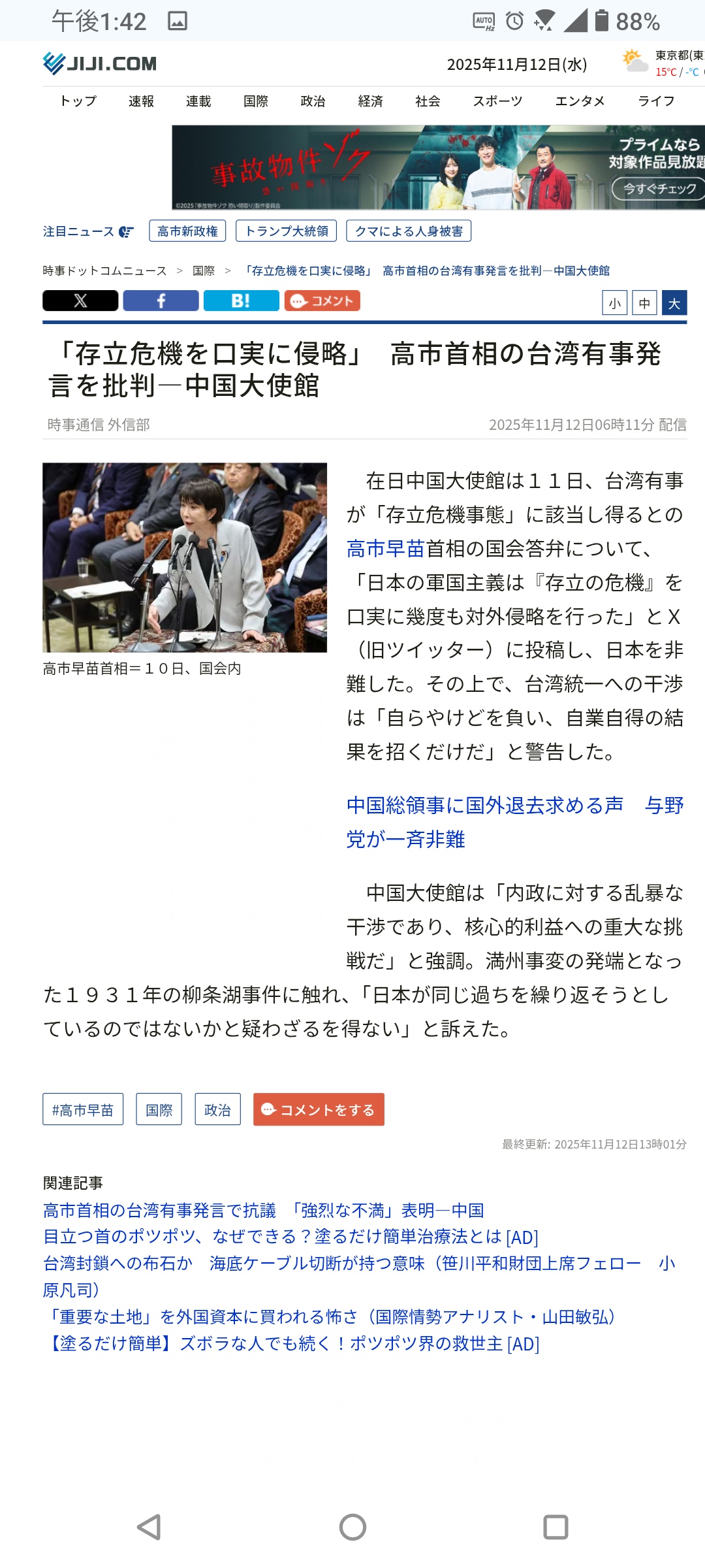 | … | 590無題Name名無し 25/11/12(水)13:44:43No.759343+ 1762922683689.jpg-(594090 B) https://www.jiji.com/jc/article?k=2025111200118&g=int |