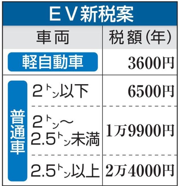ガソリンなど燃料にかかる税の負担がない車への課税を強化し、インフラの維持・管理費を確保する狙い。経済産業省は負担増に反対しており、与党の税制調査会が導入の是非を検討する。