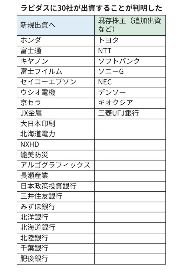 最先端半導体のラピダスに、新たに20社超が出資する。