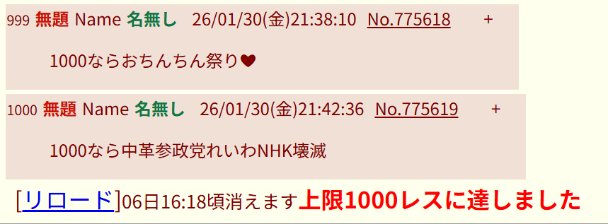 | … | 50無題Name名無し 26/01/31(土)00:39:11No.775677+今選挙中だし政府はわからないでしょ |