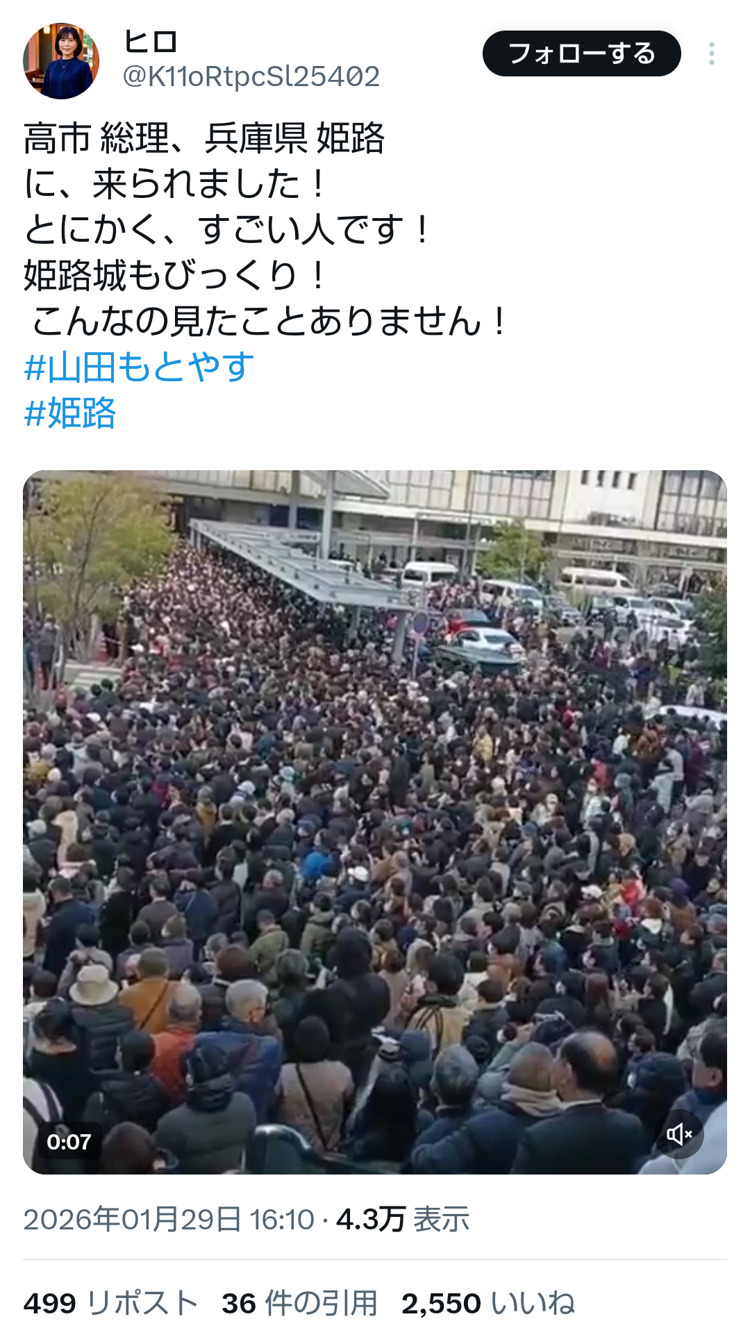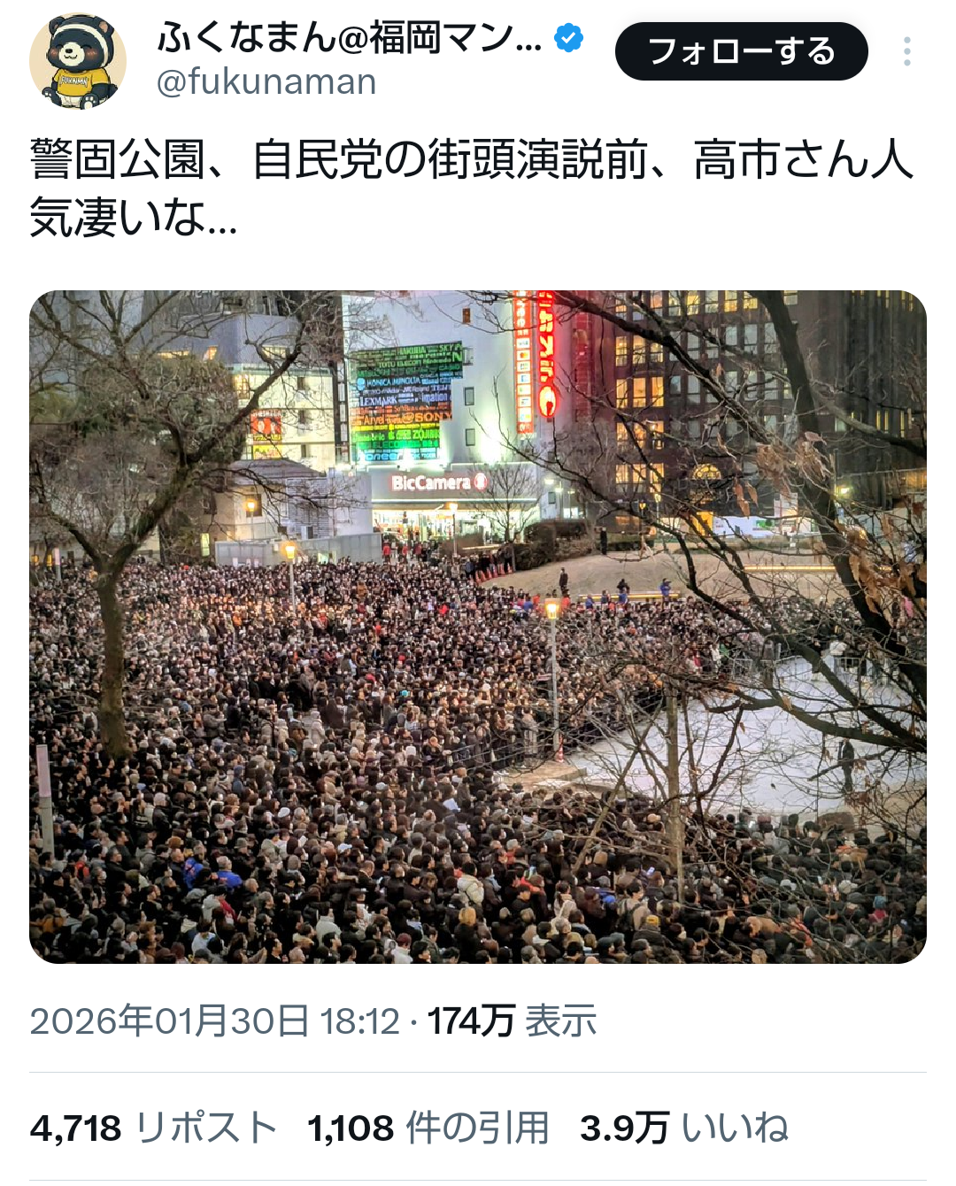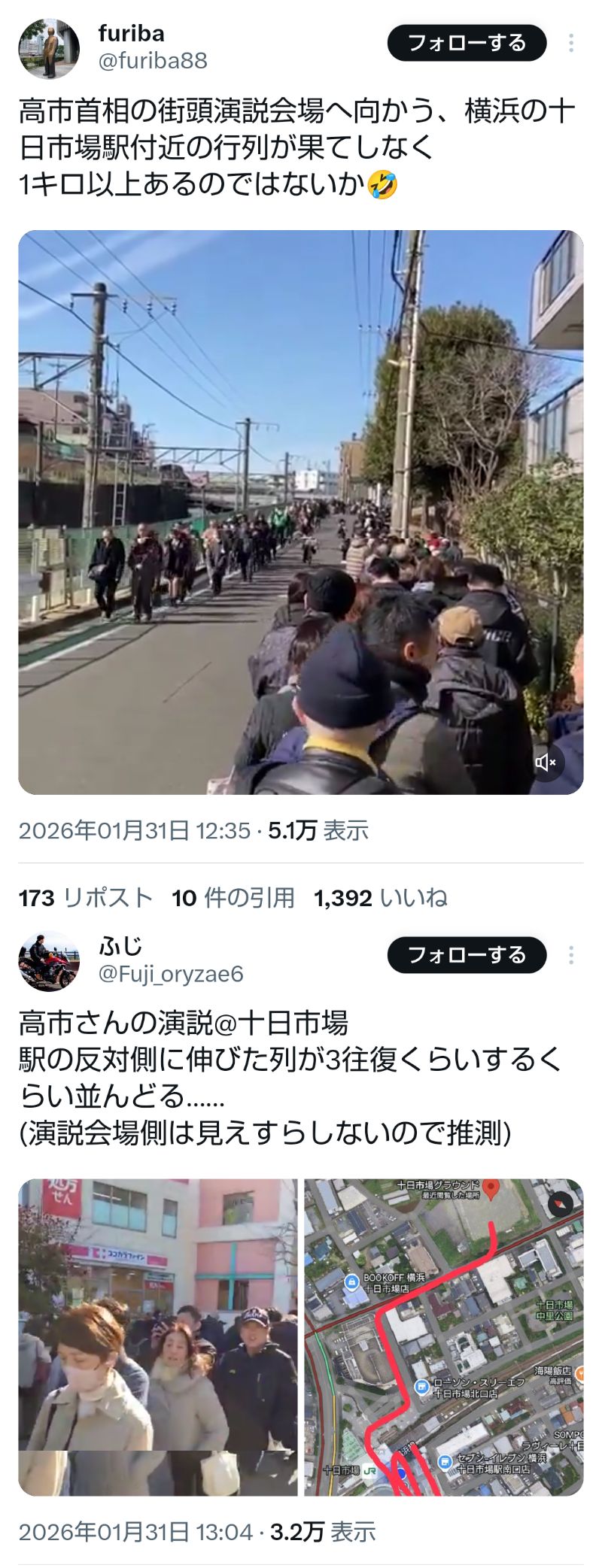 | … | 430無題Name名無し 26/02/01(日)17:51:00No.776150+中革が高市さんに対抗して同じ公園に大量動員したのはフェイクではないそうで |