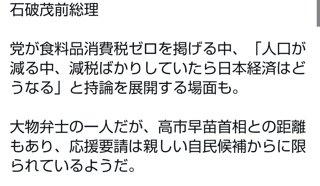 | … | 78無題Name名無し 26/02/04(水)01:51:00No.776922そうだねx1 1770137460435.jpg-(119740 B) >石破前首相、側近議員中心に応援 「減税ばかりでは日本どうなる」持論も |