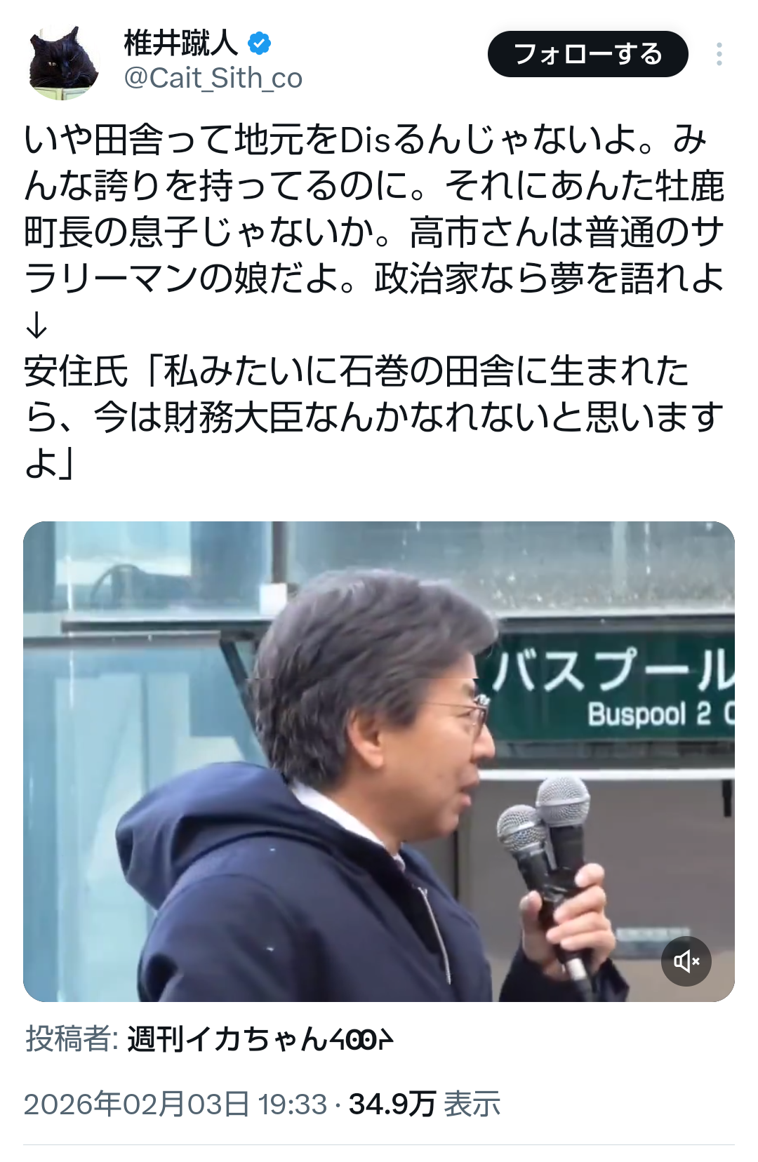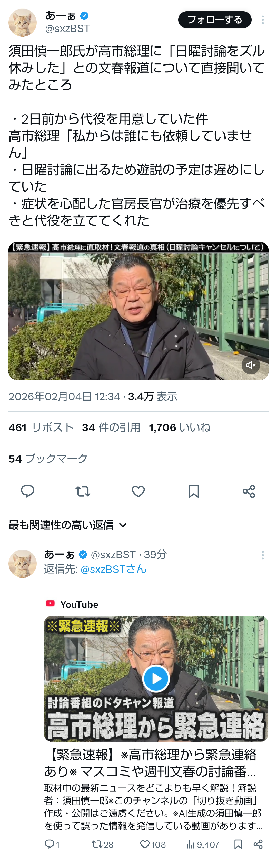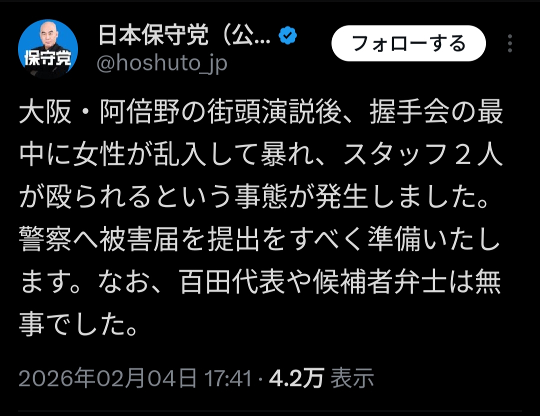 | … | 50無題Name名無し 26/02/03(火)22:19:45No.776894+>高市さん襲撃現場の映像が残ってるんだから事前計画もなにもないわ |