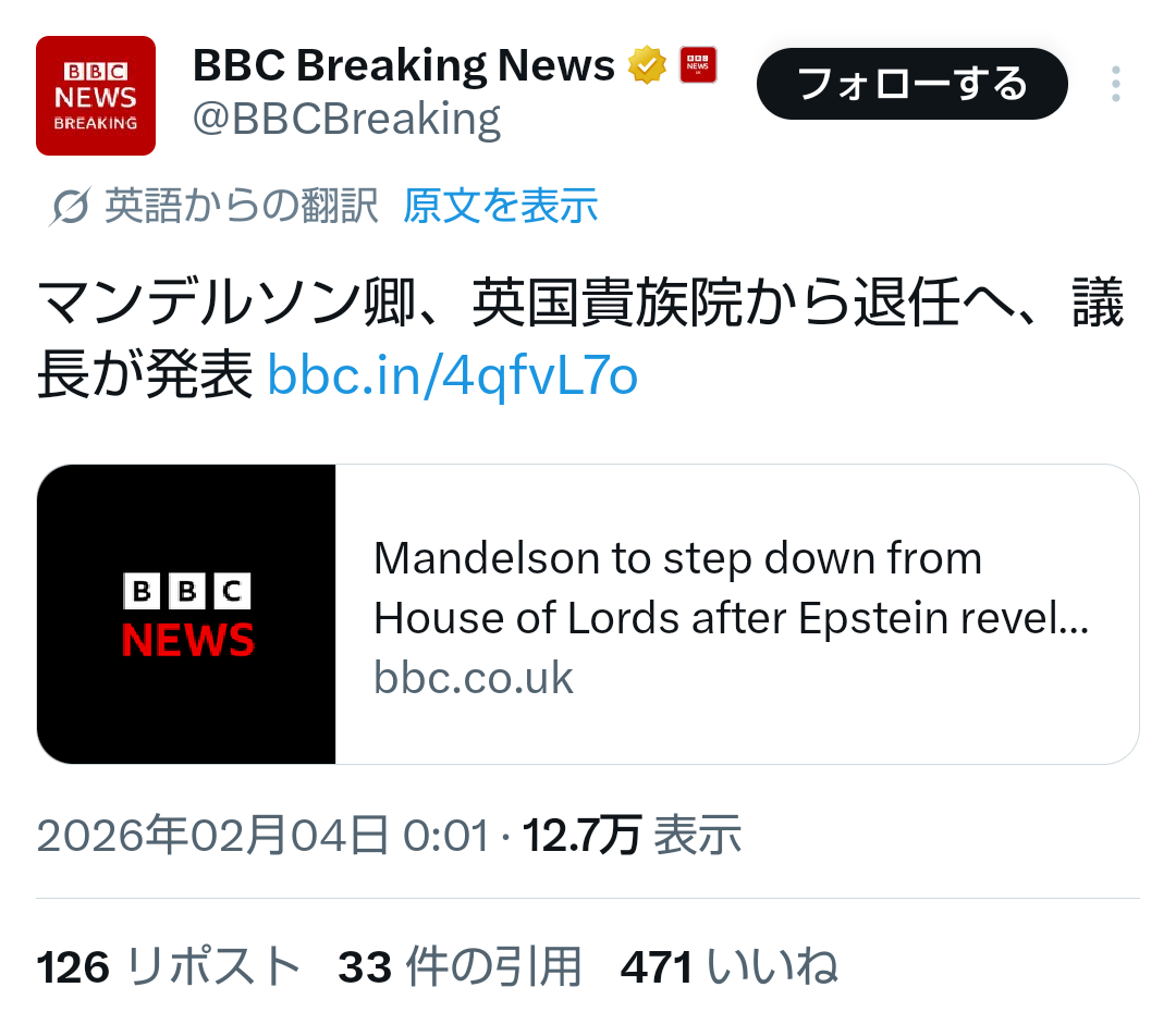 | … | 97無題Name名無し 26/02/04(水)08:14:03No.776943+イギリスはイギリスでエプスタインファイルで王室失墜してて |