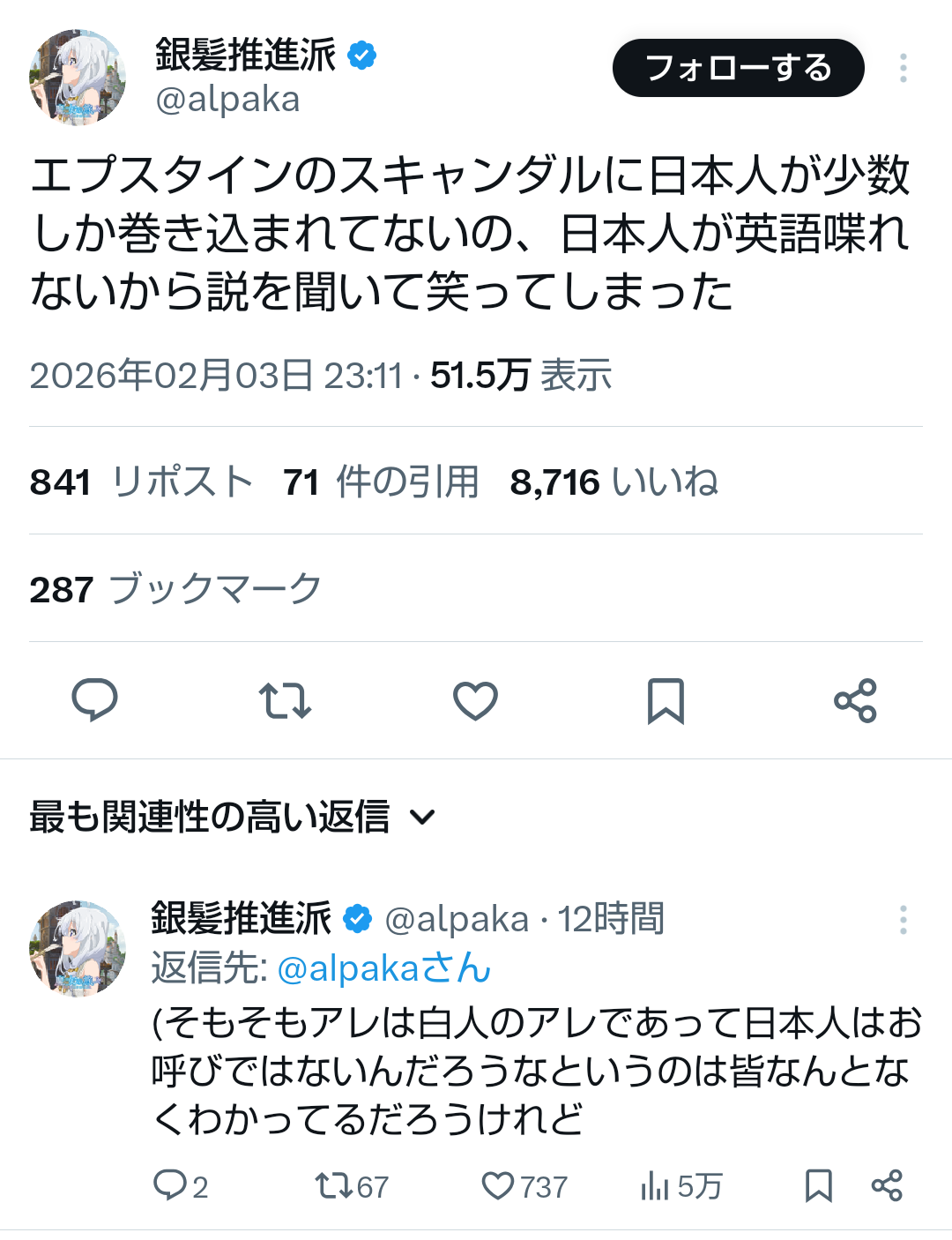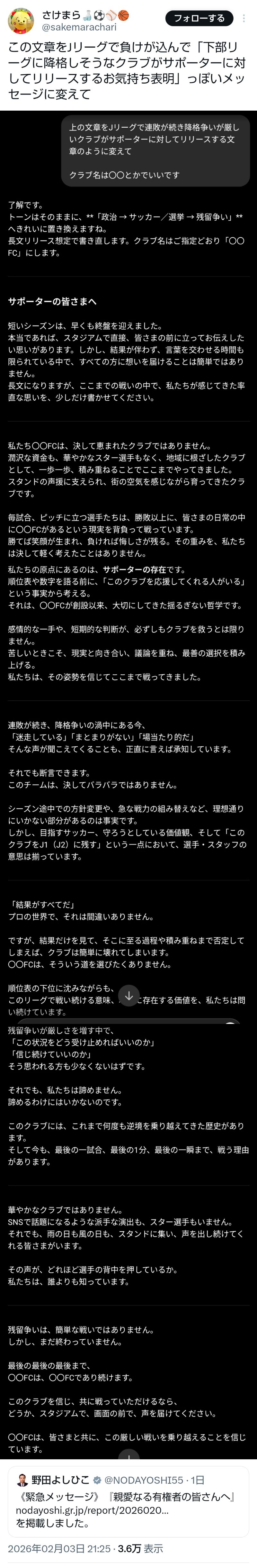 | … | 646無題Name名無し 26/02/06(金)17:47:45No.777620+ 1770367665178.jpg-(332948 B) https://x.com/i/status/2019679676130877550 |
