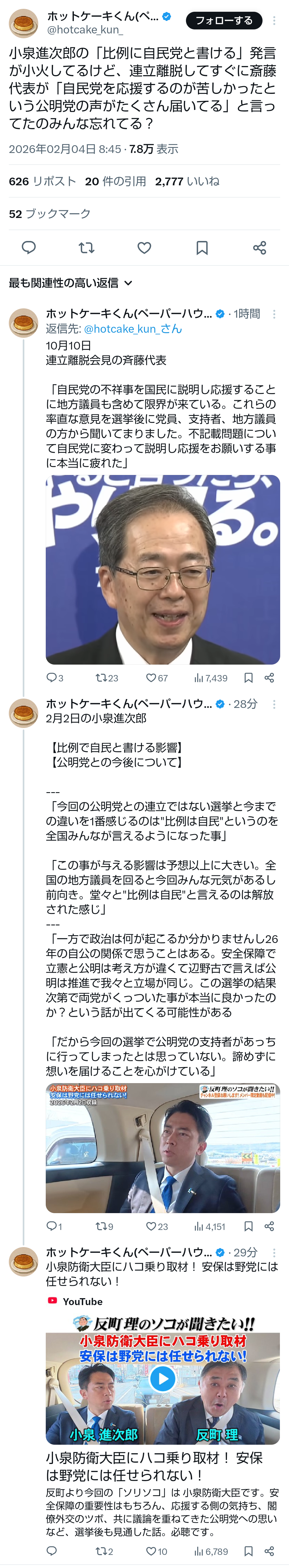 | … | 4無題Name名無し 26/02/03(火)19:59:56No.776840+ 1770116396362.png-(448447 B) >「解放された感じだ」小泉進次郎防衛相、公明の連立離脱で「堂々と比例は自民」訴え |