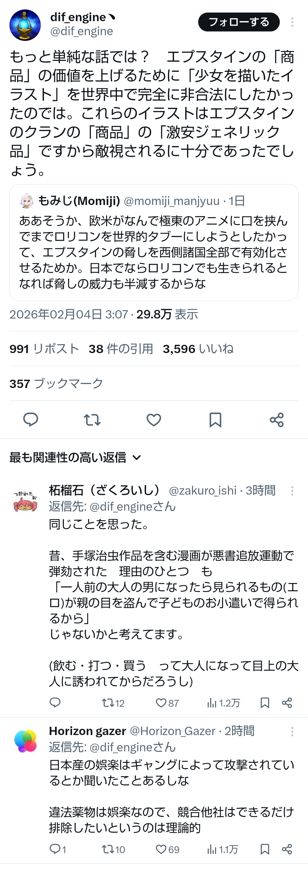 | … | 18無題Name名無し 26/02/03(火)21:09:49No.776858そうだねx2 1770120589089.png-(714299 B) https://x.com/i/status/2018632071217111480 |