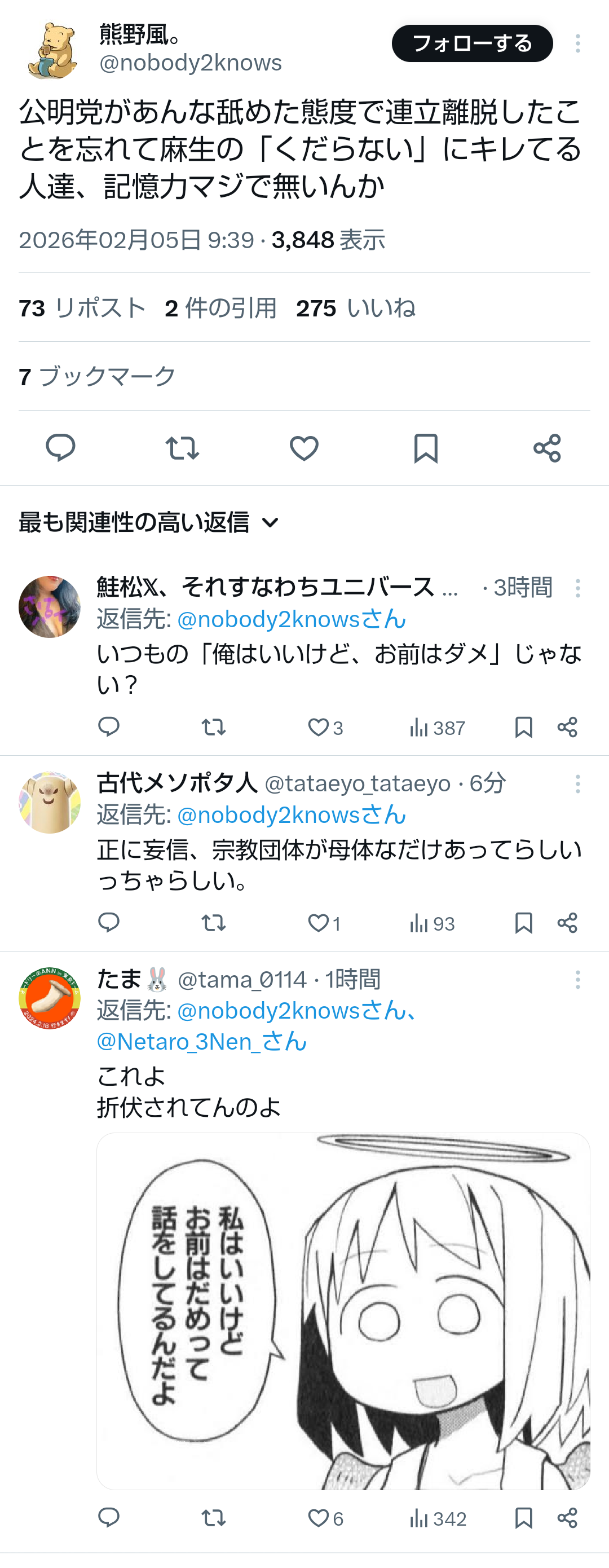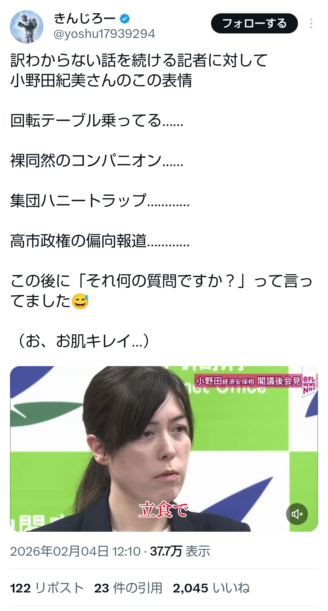 | … | 93無題Name名無し 26/02/04(水)07:54:47No.776939そうだねx2 1770159287223.jpg-(638273 B) https://news.yahoo.co.jp/articles/ccb346114eec0f31afa91b54f607c37abcf724bb |
