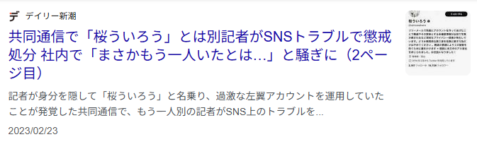 | … | 40無題Name名無し 26/02/03(火)22:05:32No.776884そうだねx5芸能ゴシップ週刊誌の限界かな? |